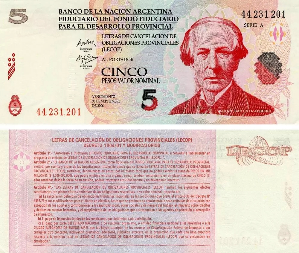 banco de la nación argentina, letra de cancelación de bondaciones provinciales (Lecop)