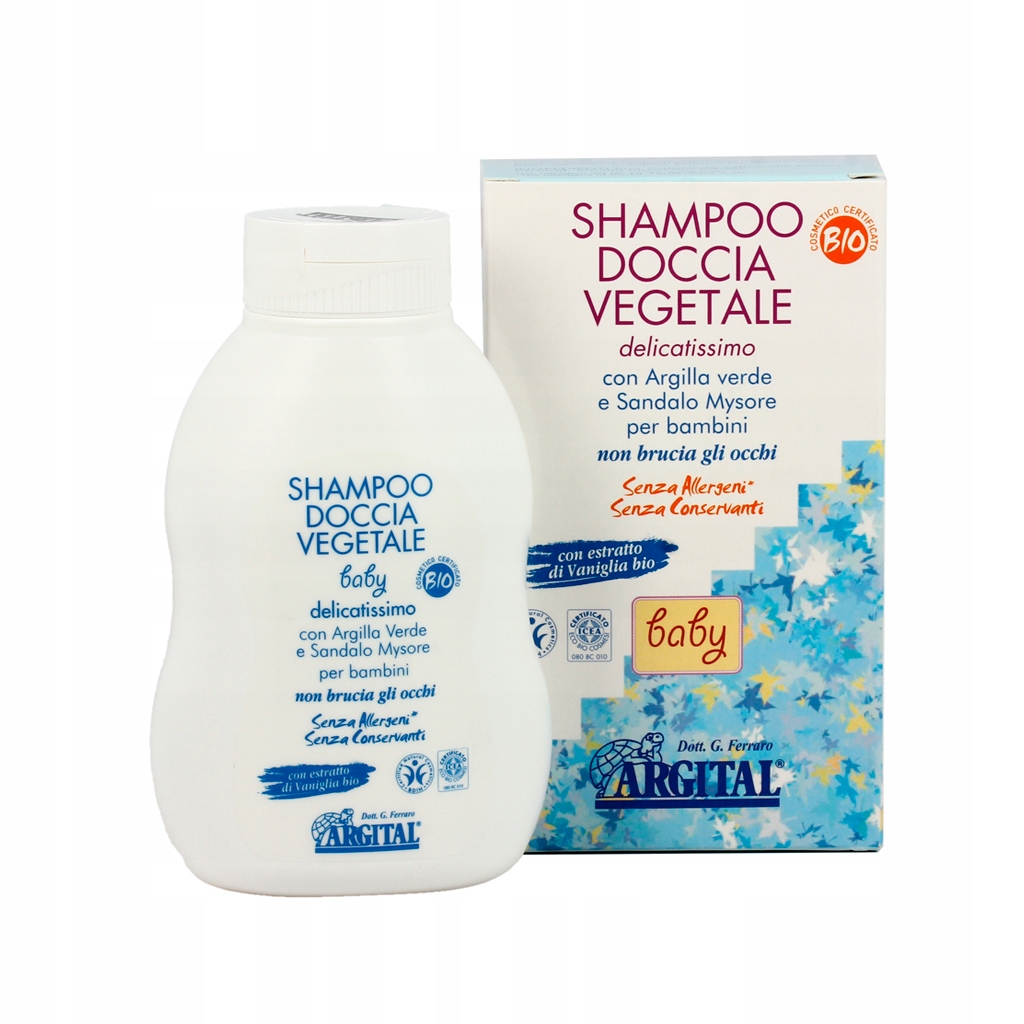 Растительный шампунь детский для мытья головы и тела на основе зеленой глины, арники, календулы и масло сандалового дерева. Оказывает очищающее, успокаивающее и защитное действие на кожу. Дополнительно устраняет шероховатости, смягчает и питает. Поскольку серия Baby от Argital состоит из 100% натуральных продуктов, она подходит для всех типов кожи, особенно для самой чувствительной, например детской.
