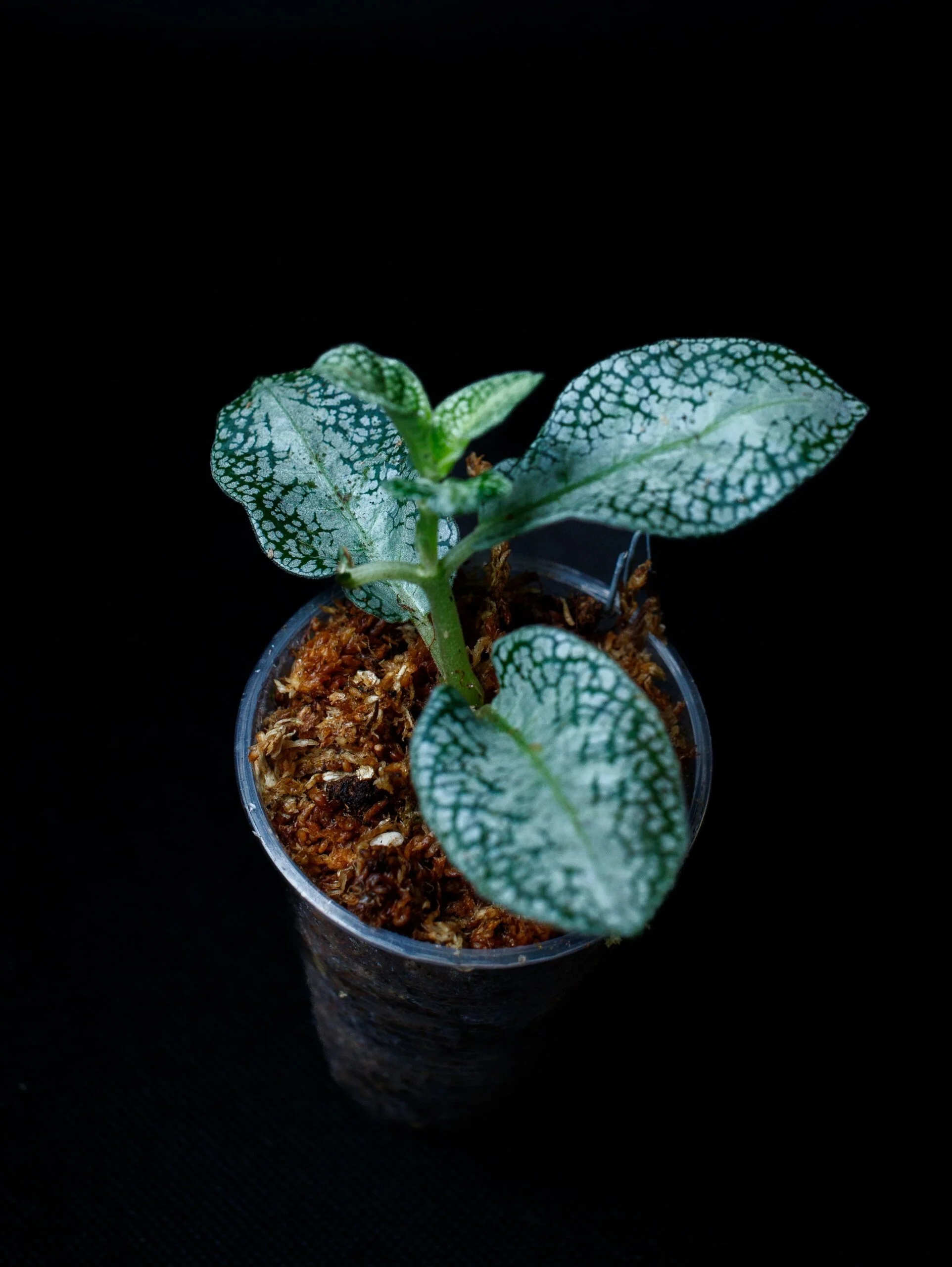 Аргостемма сп. «Белый» — редкое тропическое растение из влажных тенистых тропических лесов Борнео. Его самым большим преимуществом являются интенсивно серебристые листья, которые контрастируют с зелеными прожилками, создавая эффект, напоминающий сетку прожилок на металлической поверхности. Растение растет невысоко, имеет приземленную форму, а на верхушке стебля всегда выпускает пару листьев, расположенных симметрично, как бы в зеркальном отражении. Этот вид растет медленно, но равномерно, создавая компактные формы, которые идеально подходят для выращивания в террариумах, тропических теплицах или витринах с повышенной влажностью. Благодаря своему уникальному внешнему виду и небольшому размеру он является идеальным фоном для более сложных лесных композиций или может выступать в качестве контраста среди мхов и лишайников.