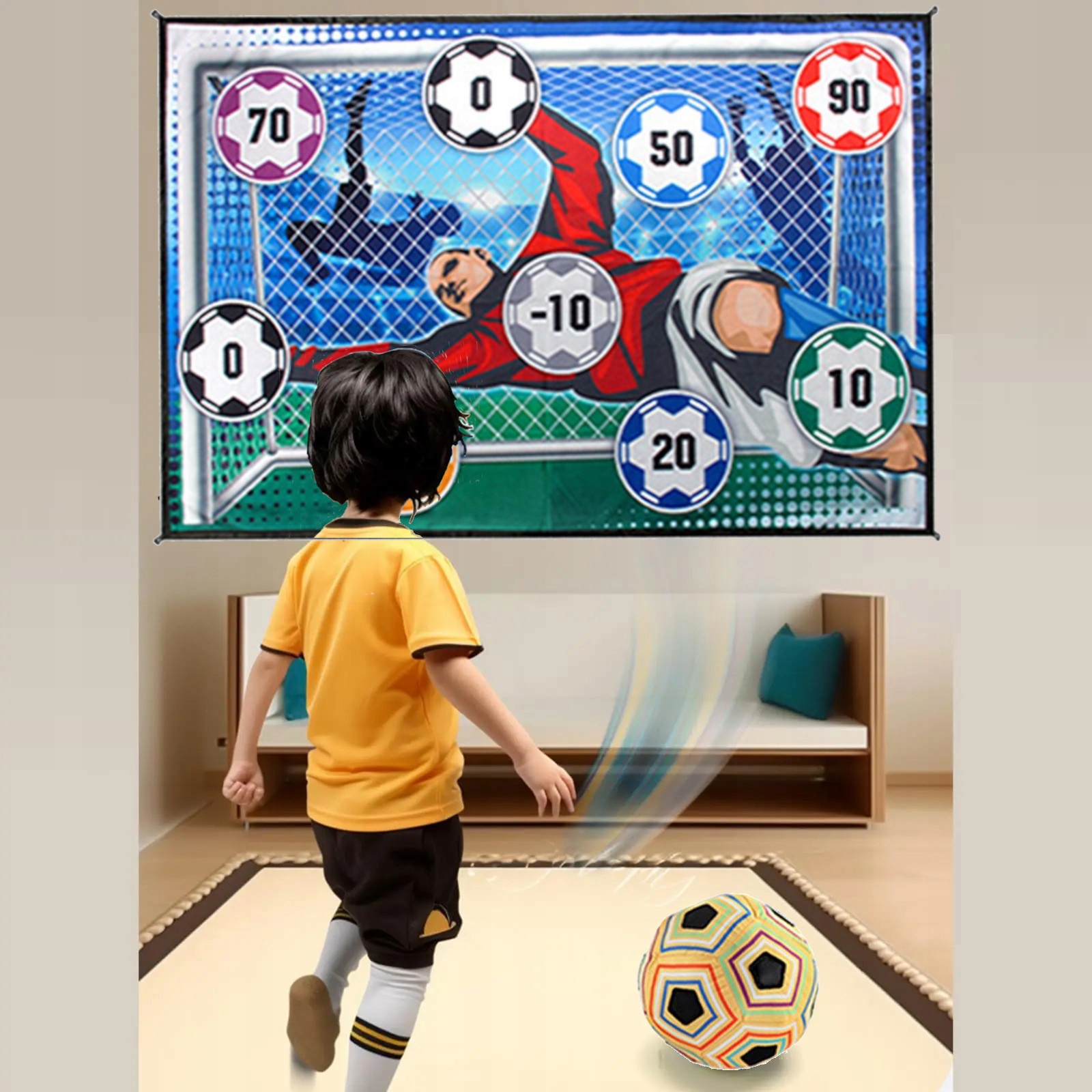 В игре нужно отбивать мяч с помощью липучки в цель. На мишени есть разные зоны для подсчета очков, и ваша задача — набрать как можно больше очков. Берегись вратаря! Избегайте мест с отрицательными очками и цельтесь туда, где у вас больше всего шансов забить!