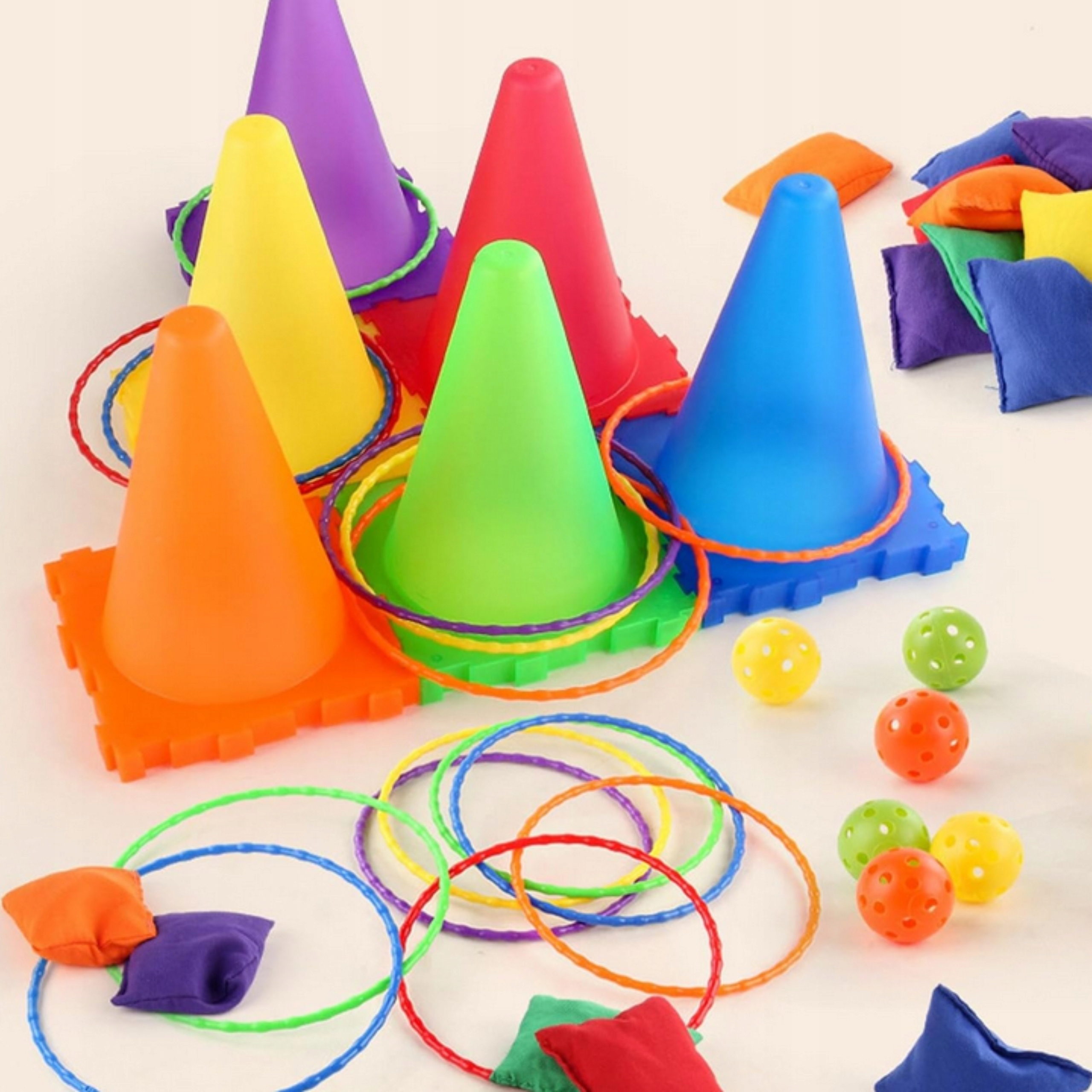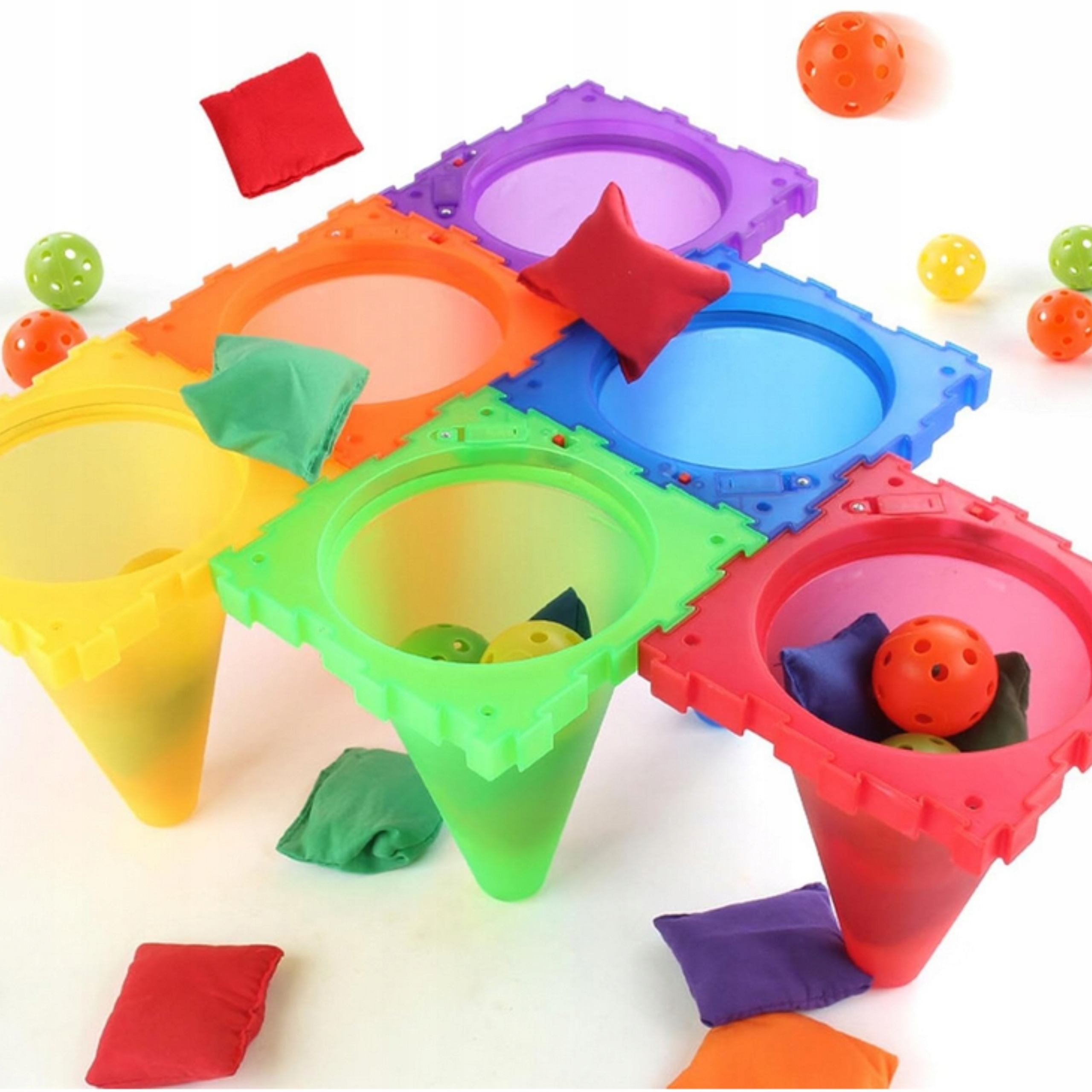 Набор поддерживает разработку ловкости, координации и концентрации, и в то же время является интересной альтернативой электронным играм. Все элементы красочные и легкие, что облегчает ношение и организовывание веселья в разных местах.