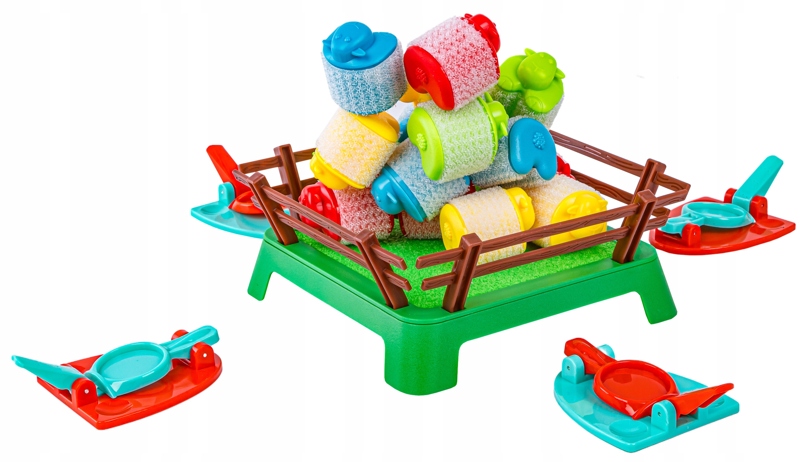 Во -первых, каждый игрок выбирает свой цвет. Затем игроки, в свою очередь, с пусковой установкой пытаются поставить животных во двор. Овцы вместо шерсти имеют специальную липучку - благодаря тому, что настоящая башня из ягненка может образоваться во дворе. У каждого участника одинаковое количество испытаний - если овцы не попадают в усадьбу и не выпрыгнули из нее - очередь теряется. Человек, у которого после полного поворота бросков, выигрывает больше всего овец из его цвета.