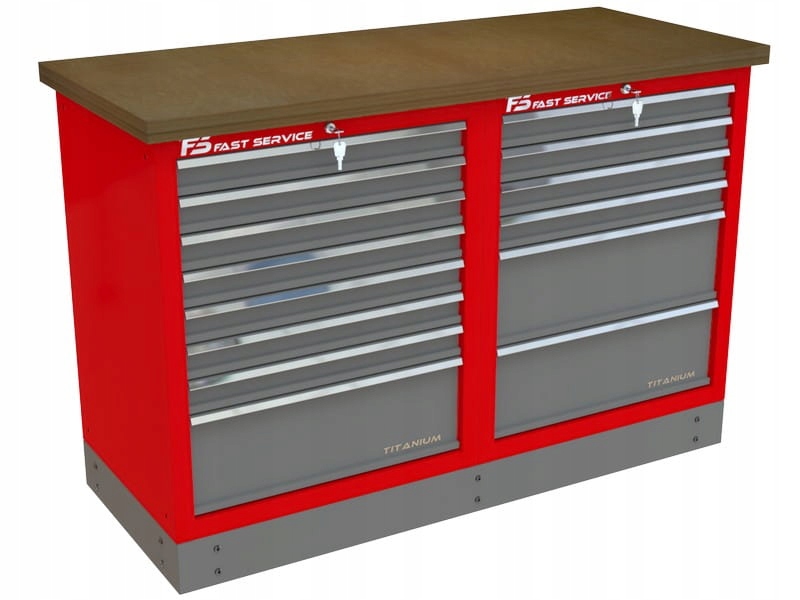 Столешница изготовлена из многослойной пропитанной фанеры твердых пород толщиной 40 мм. Прочная столешница для тяжелой работы, особенно в тисках. Вес самой столешницы у столов шириной 1400 мм составляет примерно 20 кг, у столов шириной примерно 2000 мм - более 30 кг