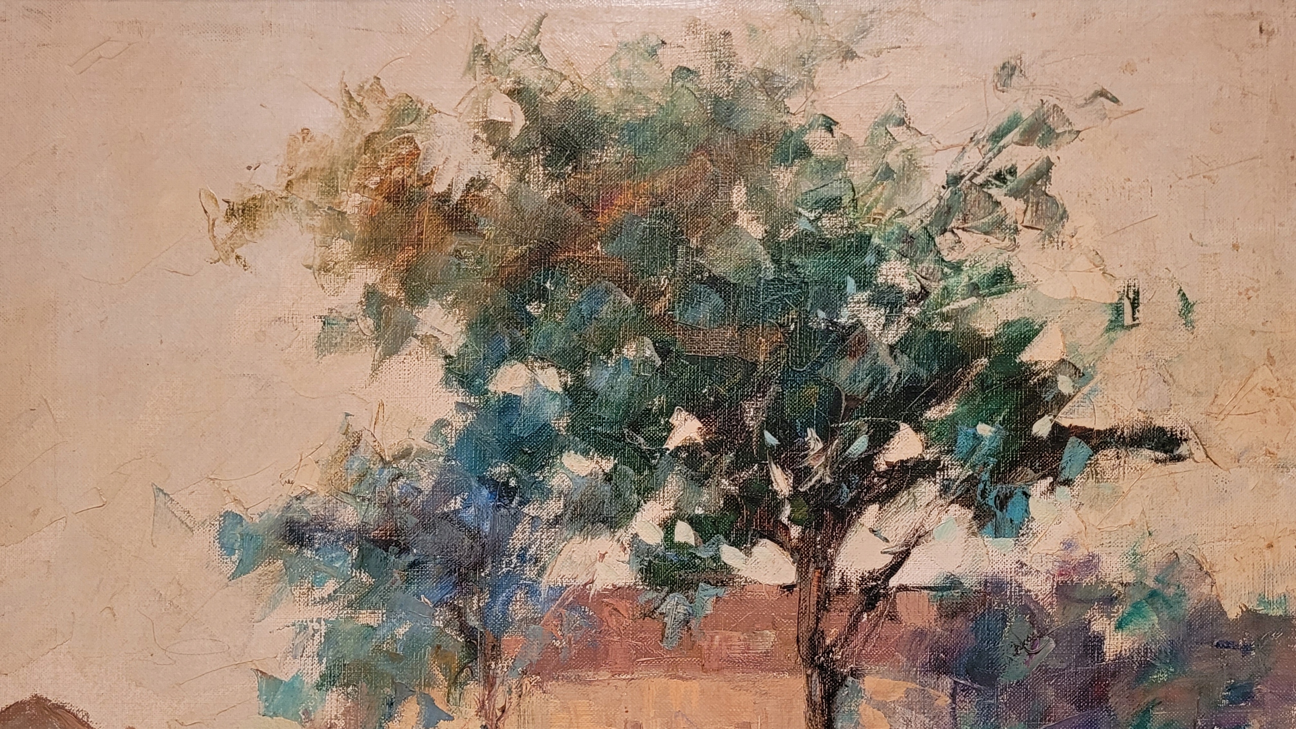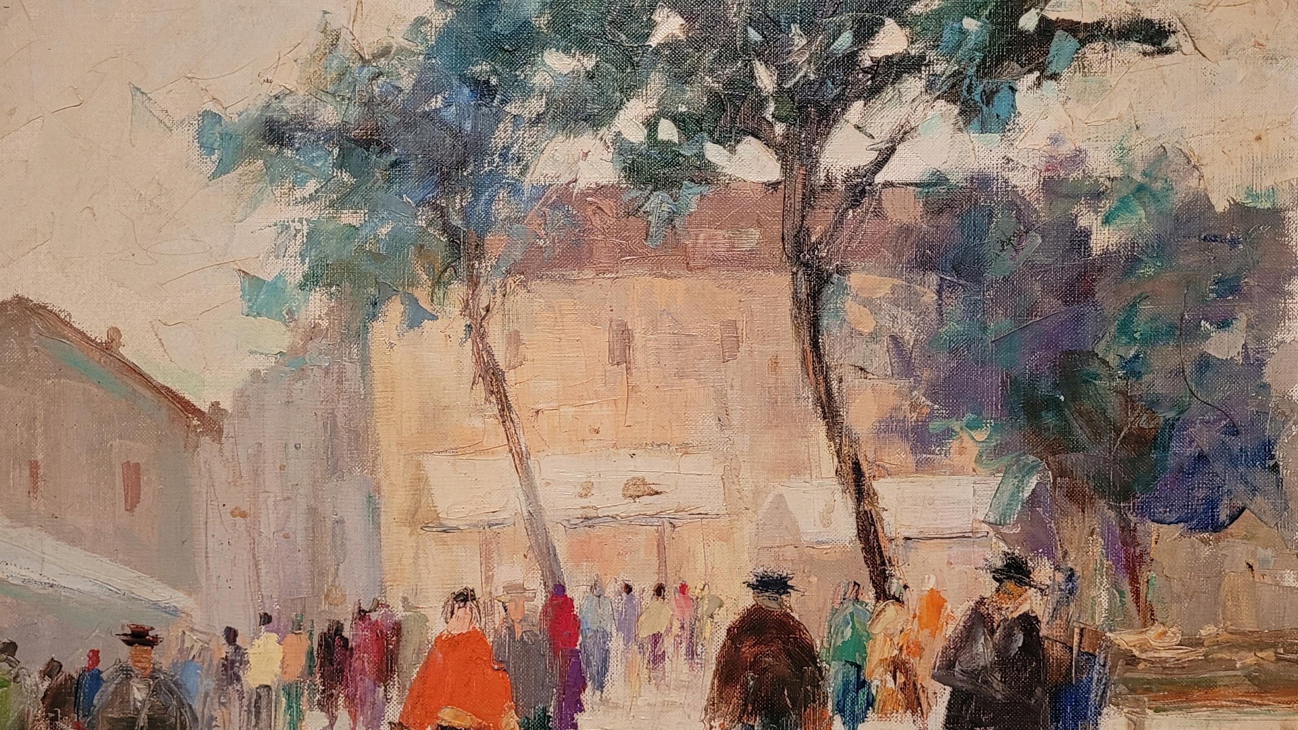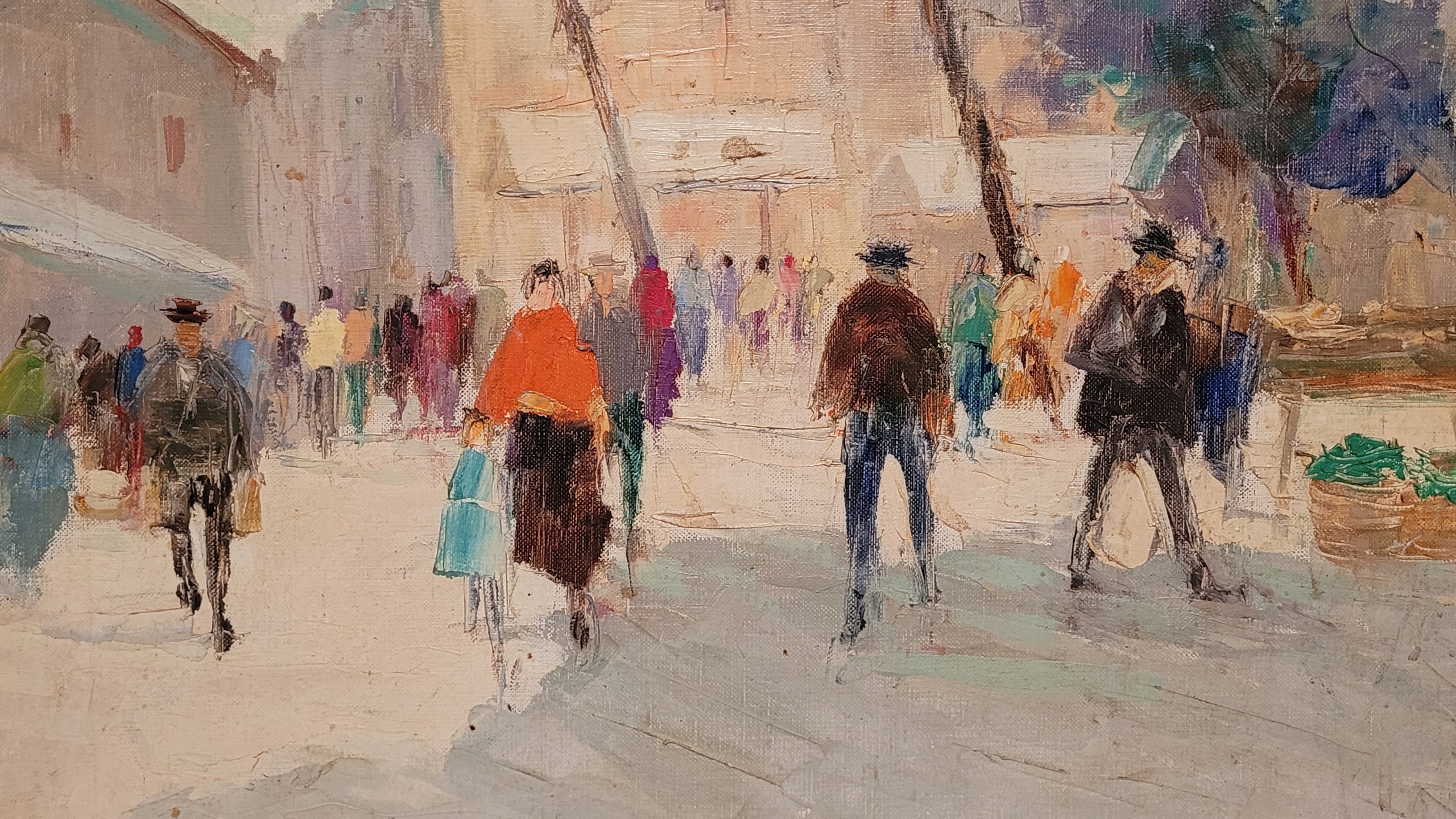 Тема продажи - красивая старая нефтяная картина "городские пейзажи".