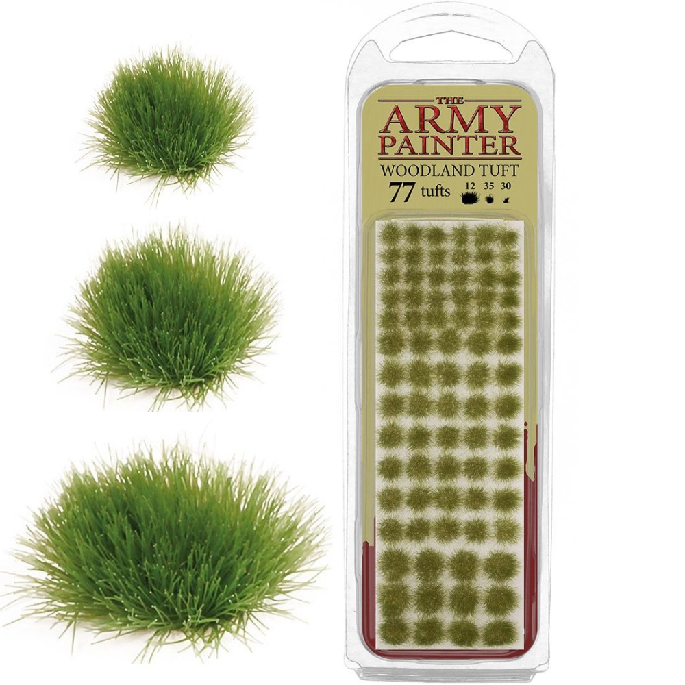 Woodland Tuft прекрасно отражает густые леса и красивые поляны. Создавайте миниатюрные пейзажи, используя материалы для лепки. Пучки легко наклеиваются, и их можно использовать для добавления деталей как на поля сражений, так и на отдельные фигурки. Они выглядят невероятно реалистично и бывают трех разных размеров.