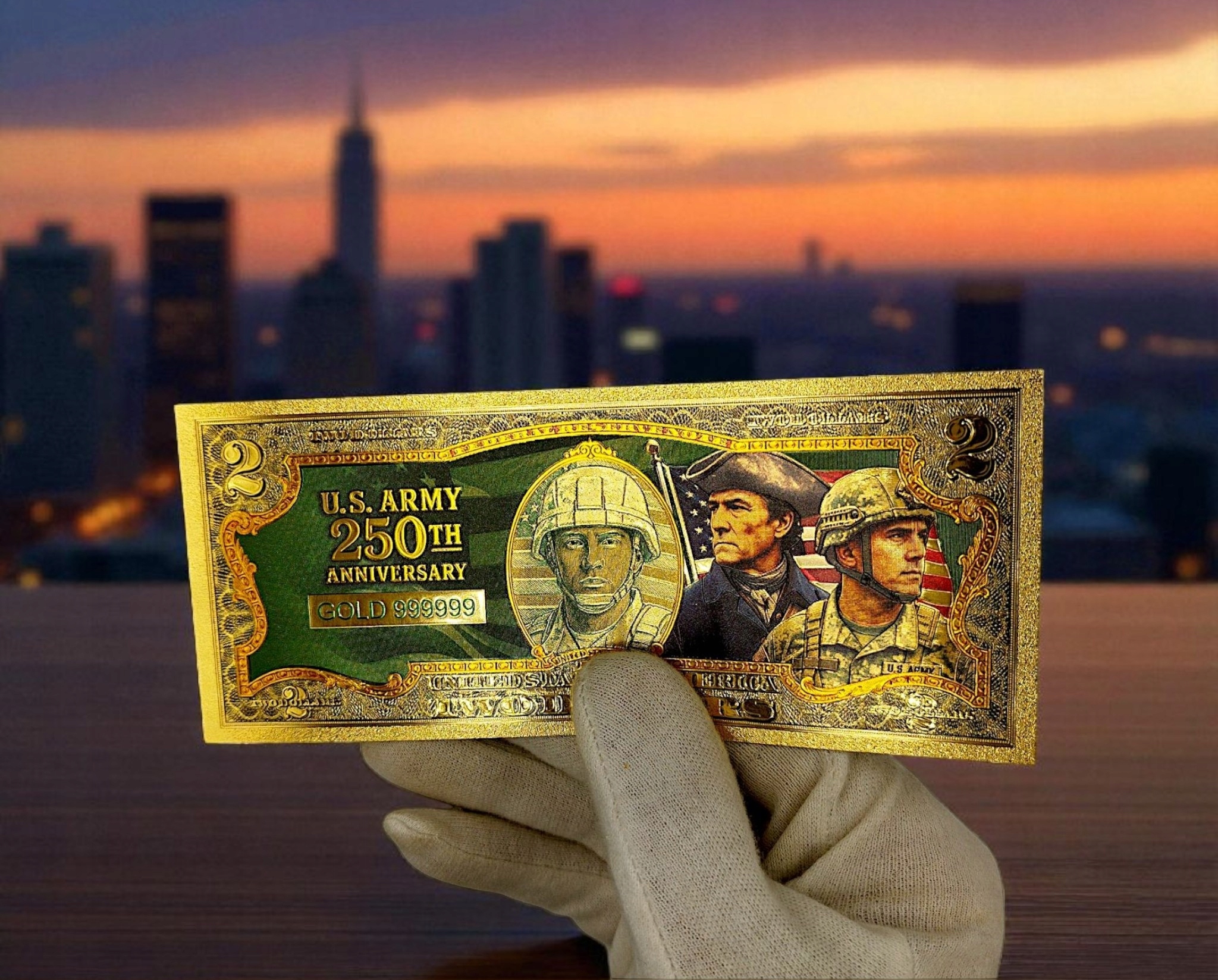 ⭐Эксклюзивная позолоченная коллекционная банкнота была создана к 250-летию армии США – старейшего военного формирования США.