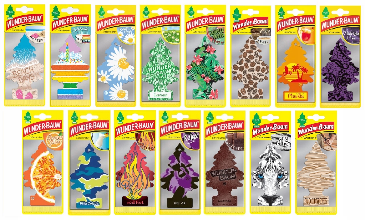 Рождественские елки Wunder Baum известны и доступны во всем мире и очень популярны. Предложение включает в себя несколько типов деревьев с различными нотами аромата, каждая из которых наверняка выберет правильный запах для себя.