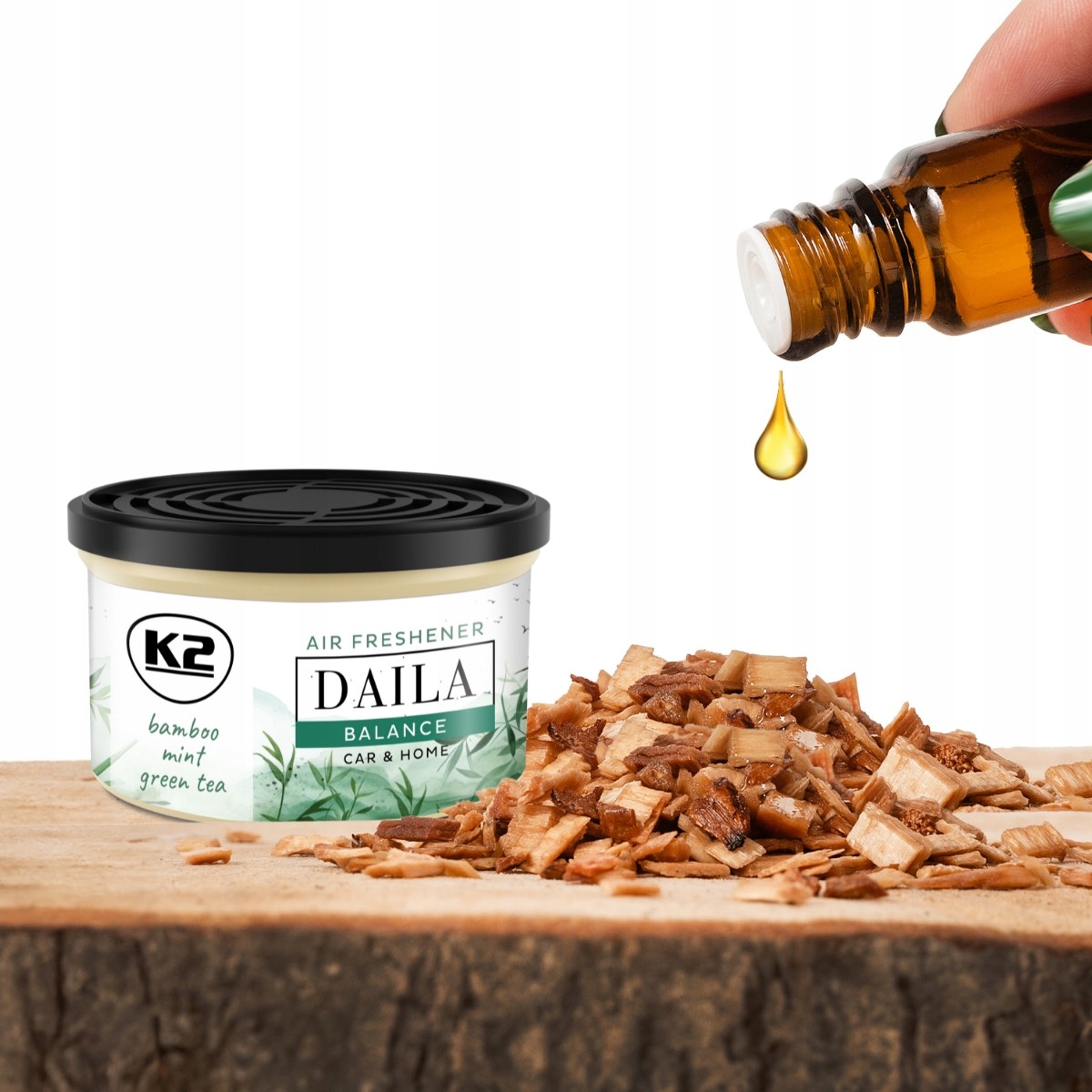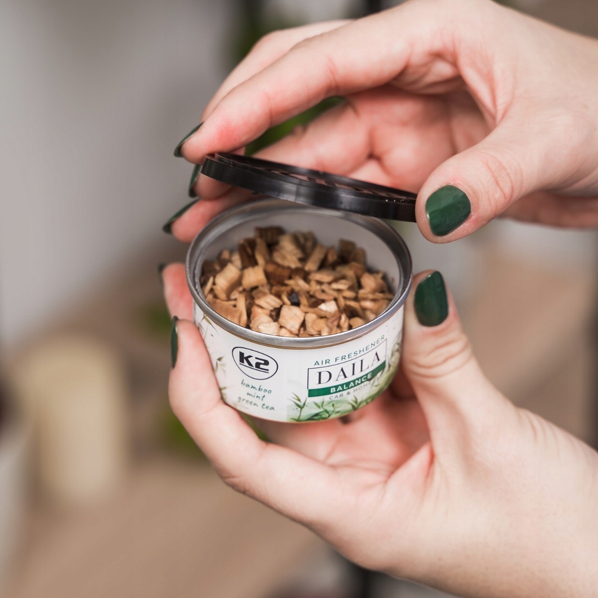 Аромат K2 DAILA BALANCE в банке для дома в машине, мятно-зеленый чай