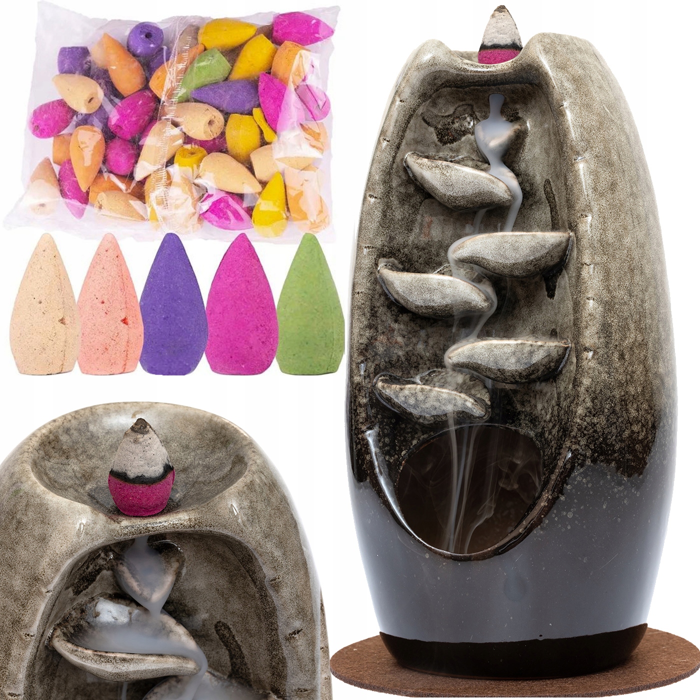 Благовония, сформированные в форме конуса, благодаря своей структуре обеспечивают эффективный поток дыма вниз по камину - подобно водному каскаду.