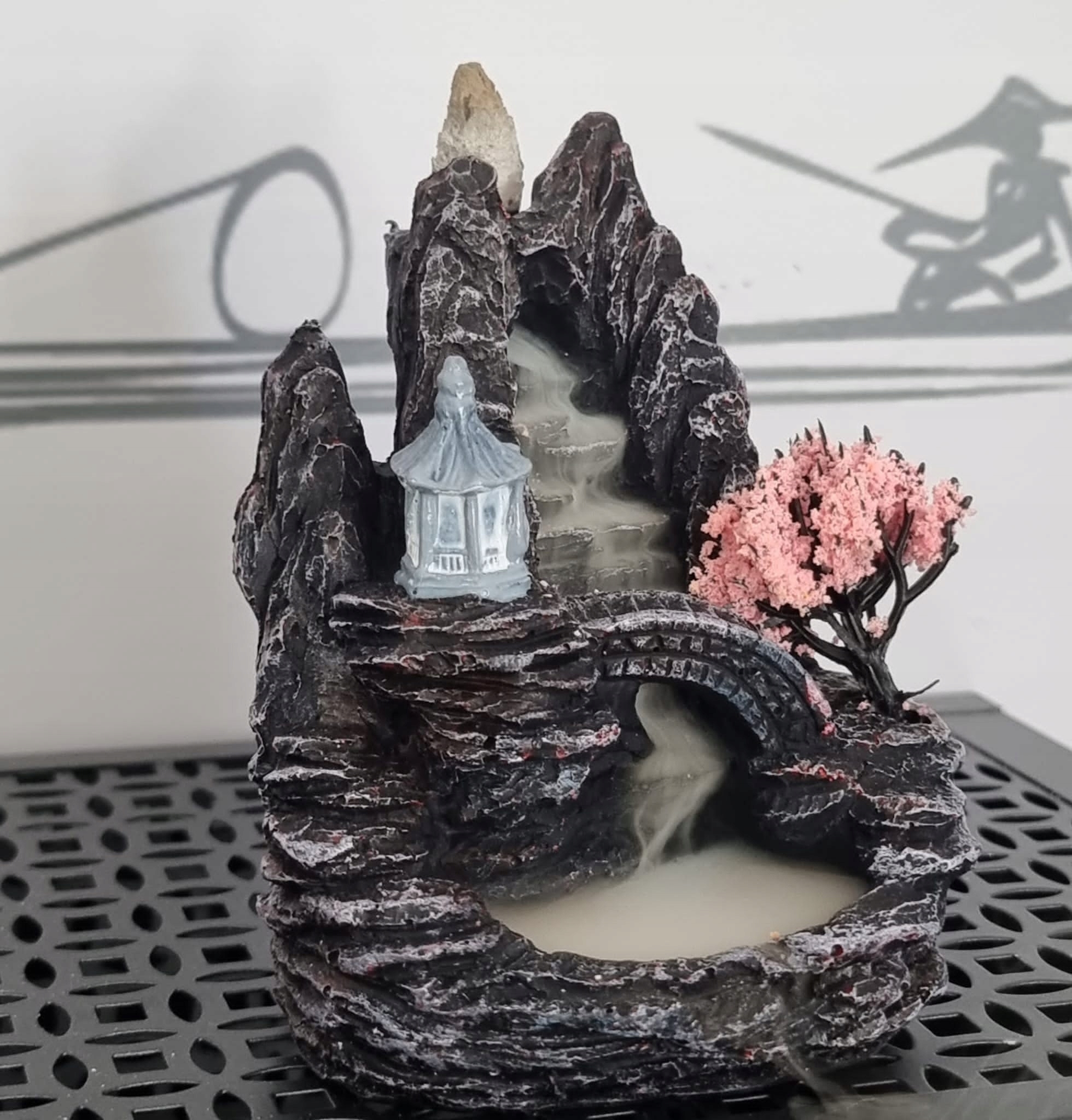 Обратный поток Ароматические камины были специально разработаны таким образом, чтобы дым от ароматической палочки скатывался вниз в контейнер в нижней части камина. Дым от ароматической палочки окутывает камин, как туман, и стекает мистической рекой по канавкам и канавкам камина.