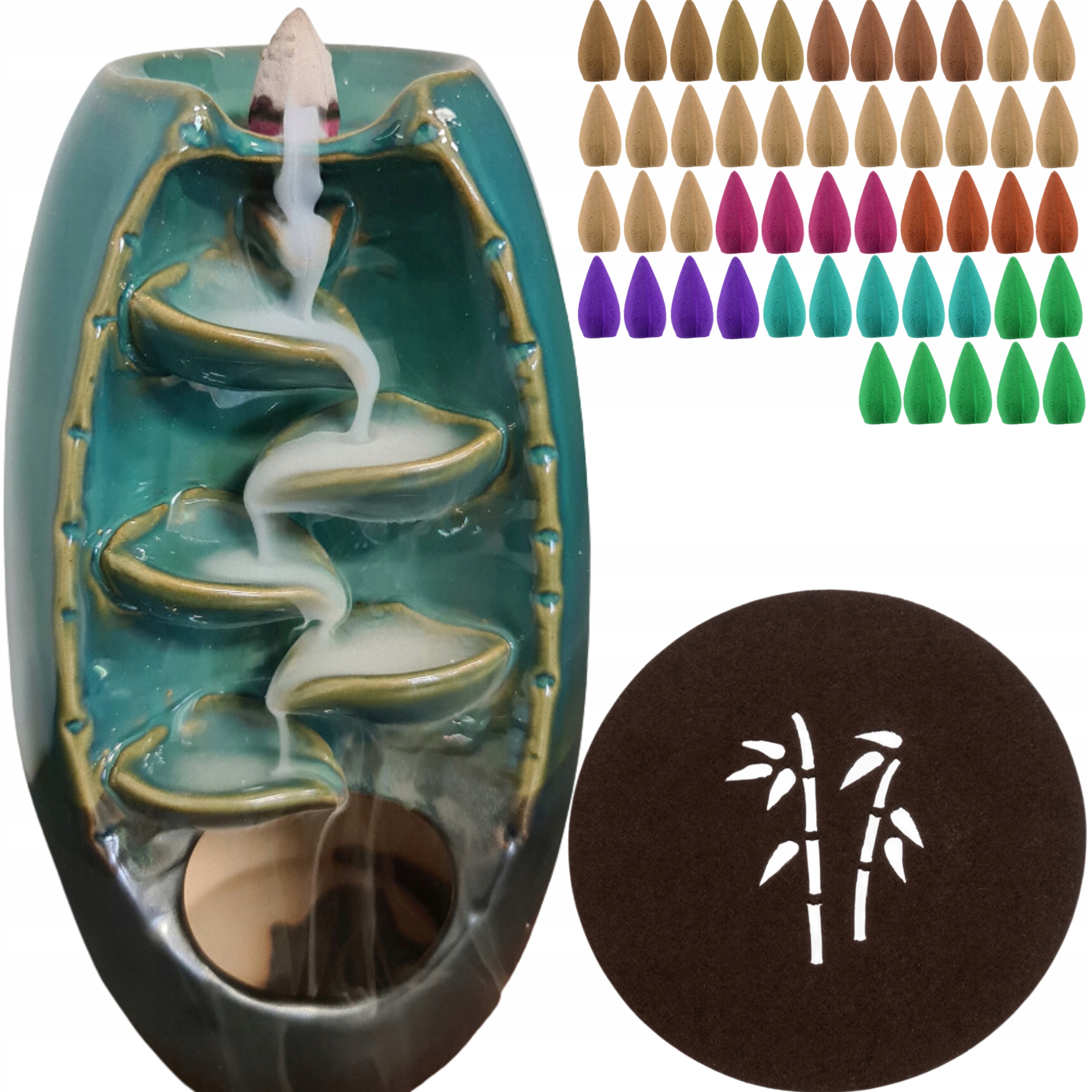 - ☑mings Waterfall Backflow - камин характеризуется простой и элегантной структурой. Это модель водопада. В своей внутренней части он имеет пять выступов, после чего дым лениво вытекает из заядлого благовония. w Специальное сгорание создает впечатляющий эффект водопада текущего дыма с помощью заднего пофере "Backflow". Каждый гость будет обращать на него внимание! Вы можете поместить его дома, в офисе или где бы вы ни хотели. Они сделаны из сандалового дерева и пропитаны в эфирных маслах. Шибки в наборе составляют 50, любой цвет благовония с другим запахом . Уникальный дизайн - идеальное украшение любого интерьера. Камин прост в использовании, и материалы, из которых он был сделан, имеют высочайшее качество. Цвет: зеленый / графит; Размеры: 10 х 20 х 12 см; Вес: 0,598 кг; Вес в упаковке: 0,684 кг
