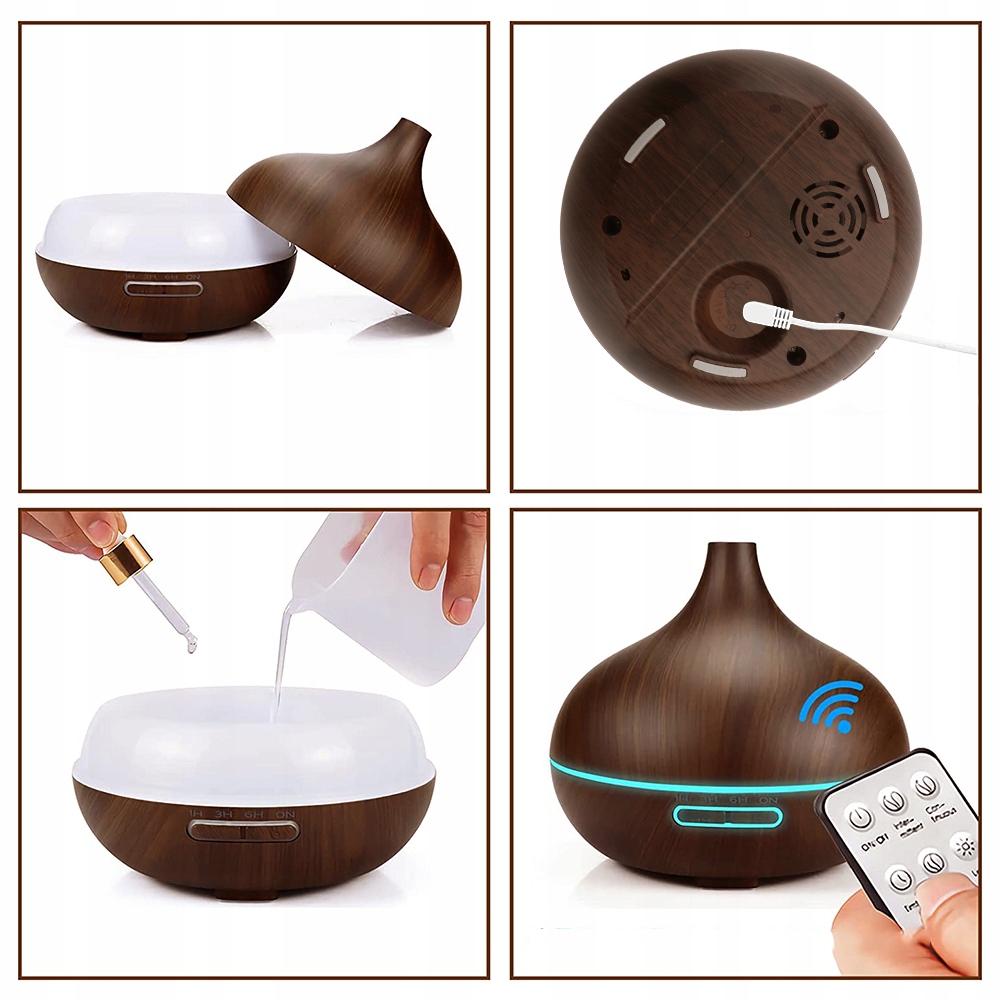 AROMATHERAPY OIL DIFFUSER LED ЗВОЛОЖНЮВАЧ 550 МЛ+ПУЛЬТ ТЕМНО-КОРИЧНЕВИЙ