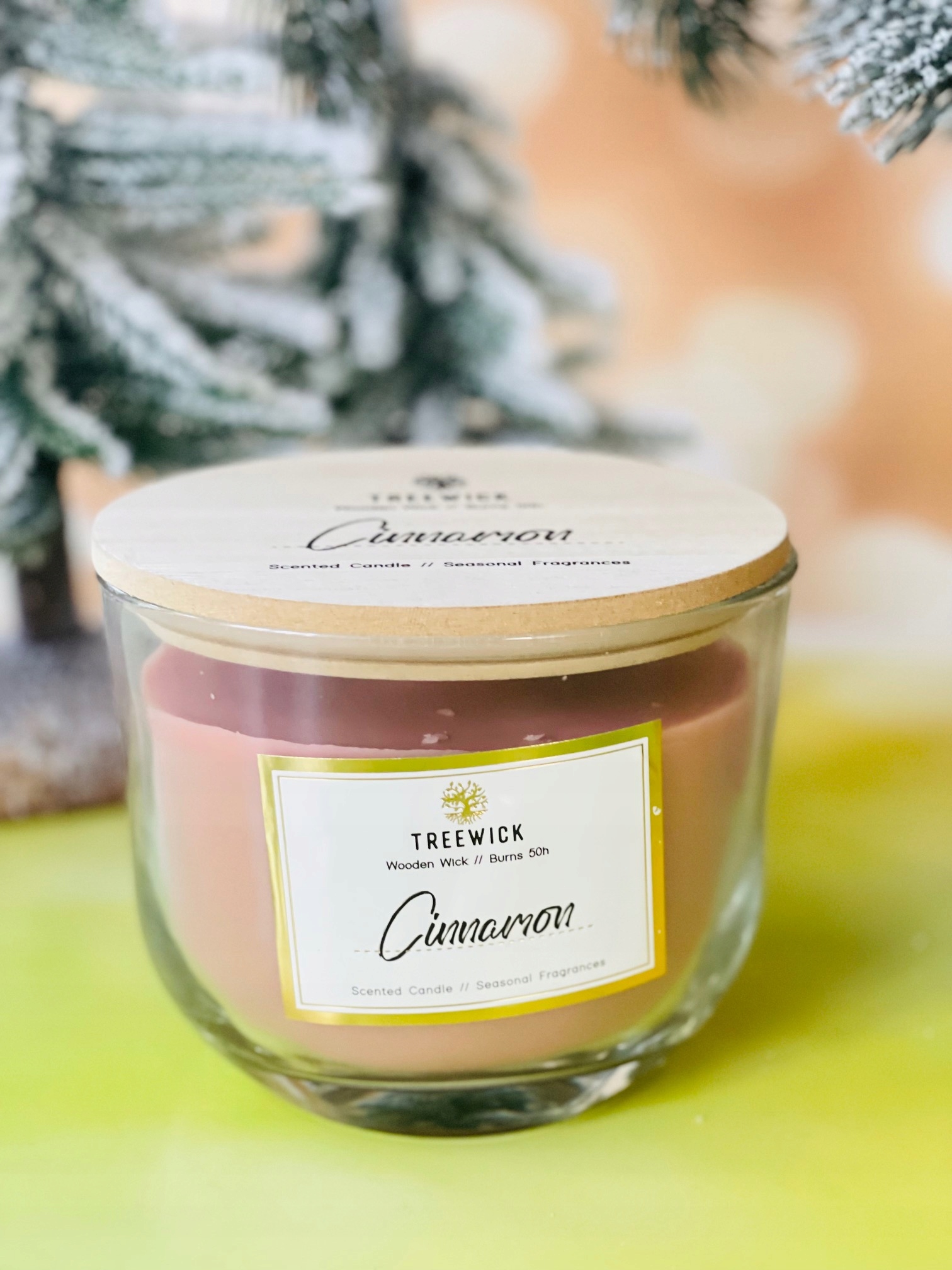 АРОМАТНАЯ СВЕЧА В СТЕКЛЕ С ДЕРЕВЯННЫМ ФИТИЛЕМ - аромат КОРИЦЫ
