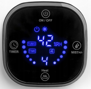 Цифровой дисплей, подключенный к сенсорной панели, информирует нас о влажности воздуха и введенных настройках.
