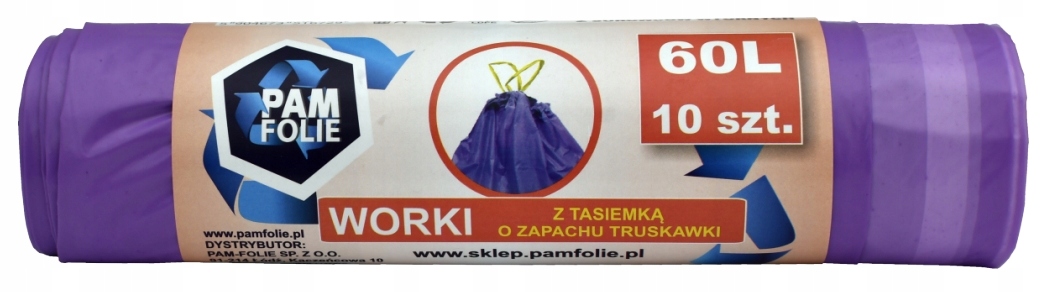 АРОМАТИЗОВАНІ МІШКИ ДЛЯ СМІТТЯ 60л зі скотчем - ПОЛУНИЦЯ - 10 шт.