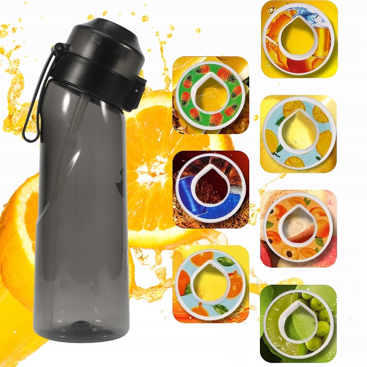 Бутылка для воды Air Up, 650 мл, со специями, 7 шт., много вкусов, черный