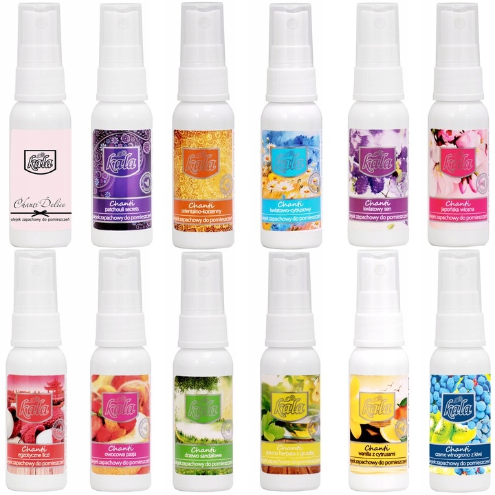 Доступные варианты ароматов тестеров Kala: Ваниль с цитрусовыми | Японская весна | Зеленый чай с грушей | Свежее белье | Делис | джинсовая ткань | Лемонграсс | Кашемир | Сандал | Цветочная мечта | Экзотический личи | Черный виноград с киви | Цветочно-цитрусовый | Си | Секреты пачули | Восточно-пряный | Фруктовая страсть