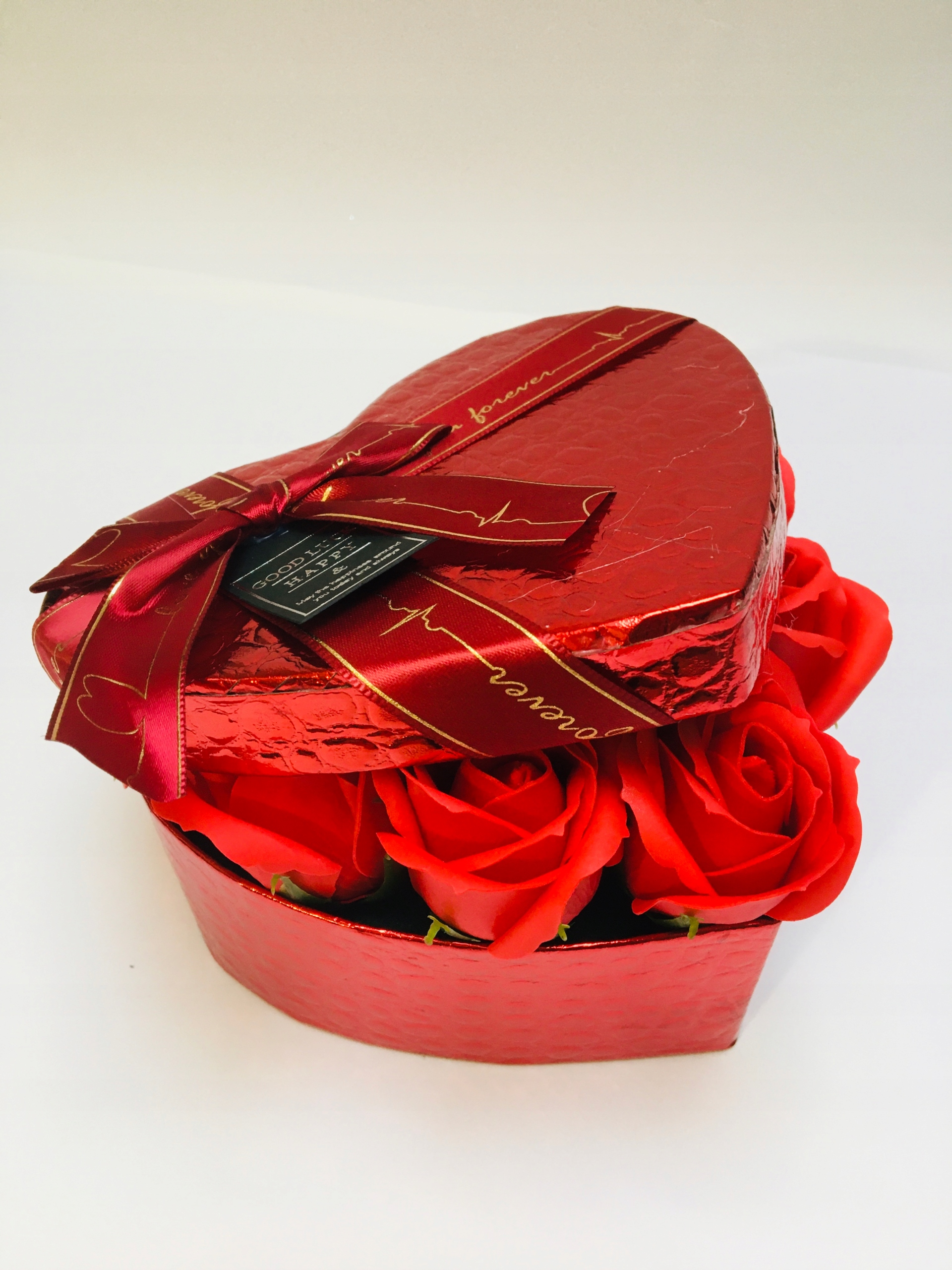 АРОМАТНЫЕ ЦВЕТЫ ДЛЯ МЫЛА В КОРОБКЕ - КРАСНЫЕ РОЗЫ В СЕРДЦЕ КОРОБКА b>
