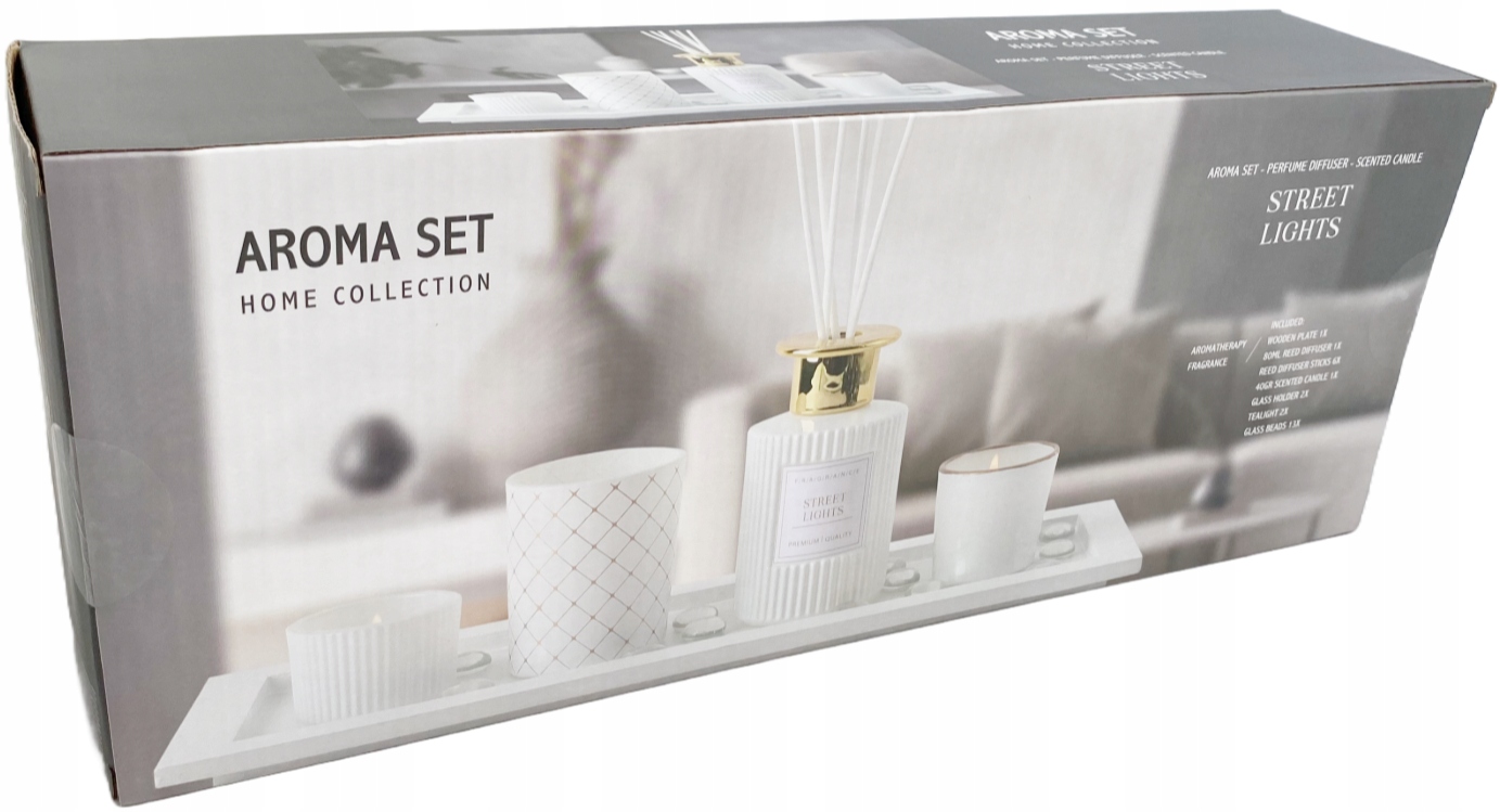 АРОМАТИЧЕСКИЙ НАБОР УЛИЧНЫЙ СВЕТ ДИФФУЗОР СВЕЧИ ГАЛЬКА НА ПОДНОСЕ