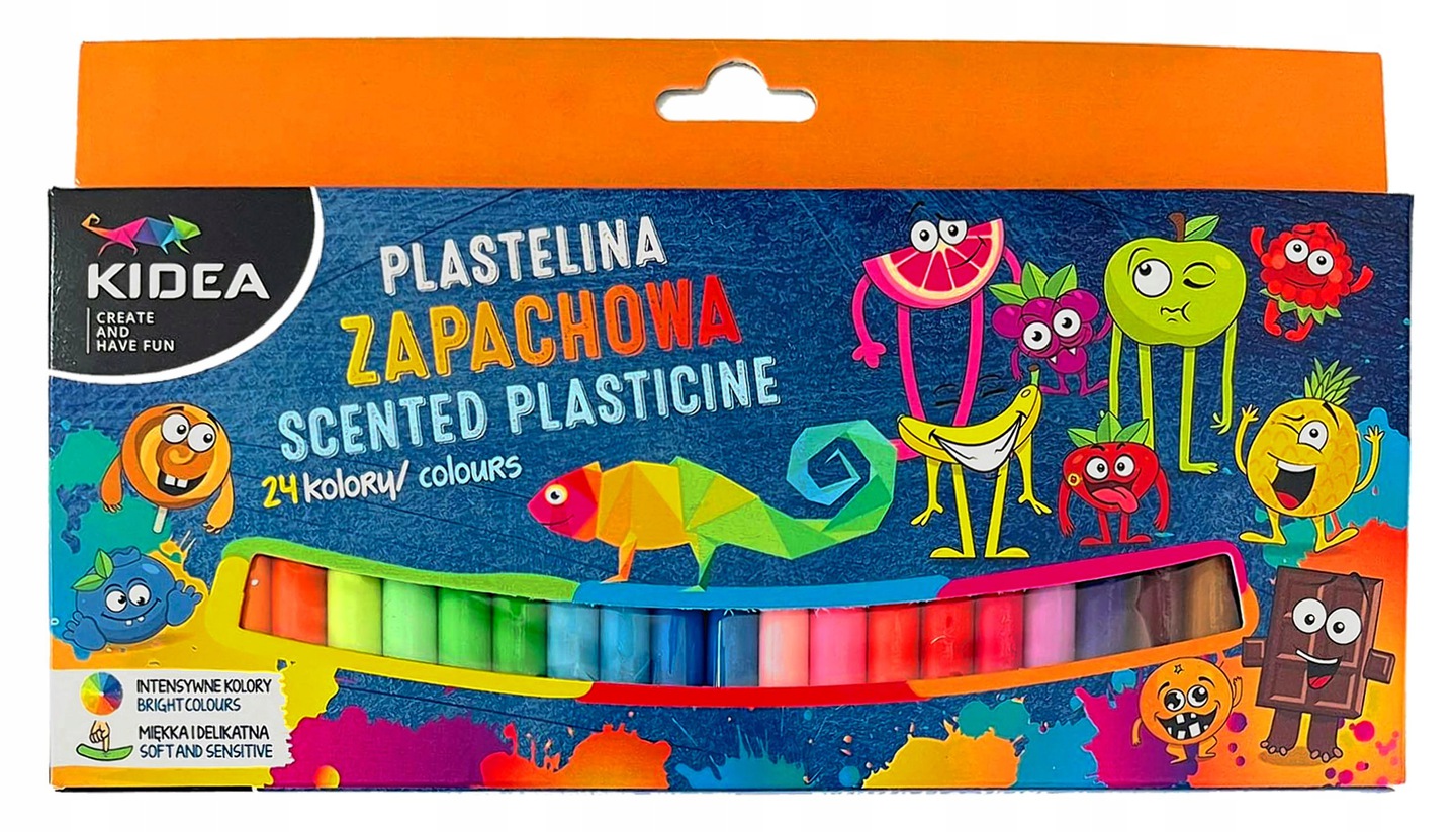 Пластилин целых 24 ароматизированных оттенков! Его сладкий, фруктовый аромат делает продукт более привлекательным и побуждает детей охотнее тянуться к нему. Такая уникальная цветовая палитра позволяет создавать необыкновенные произведения и украшения. Мягкая и гибкая консистенция позволяет легко формировать различные фигуры и быстро наклеивать картинки на бумагу.