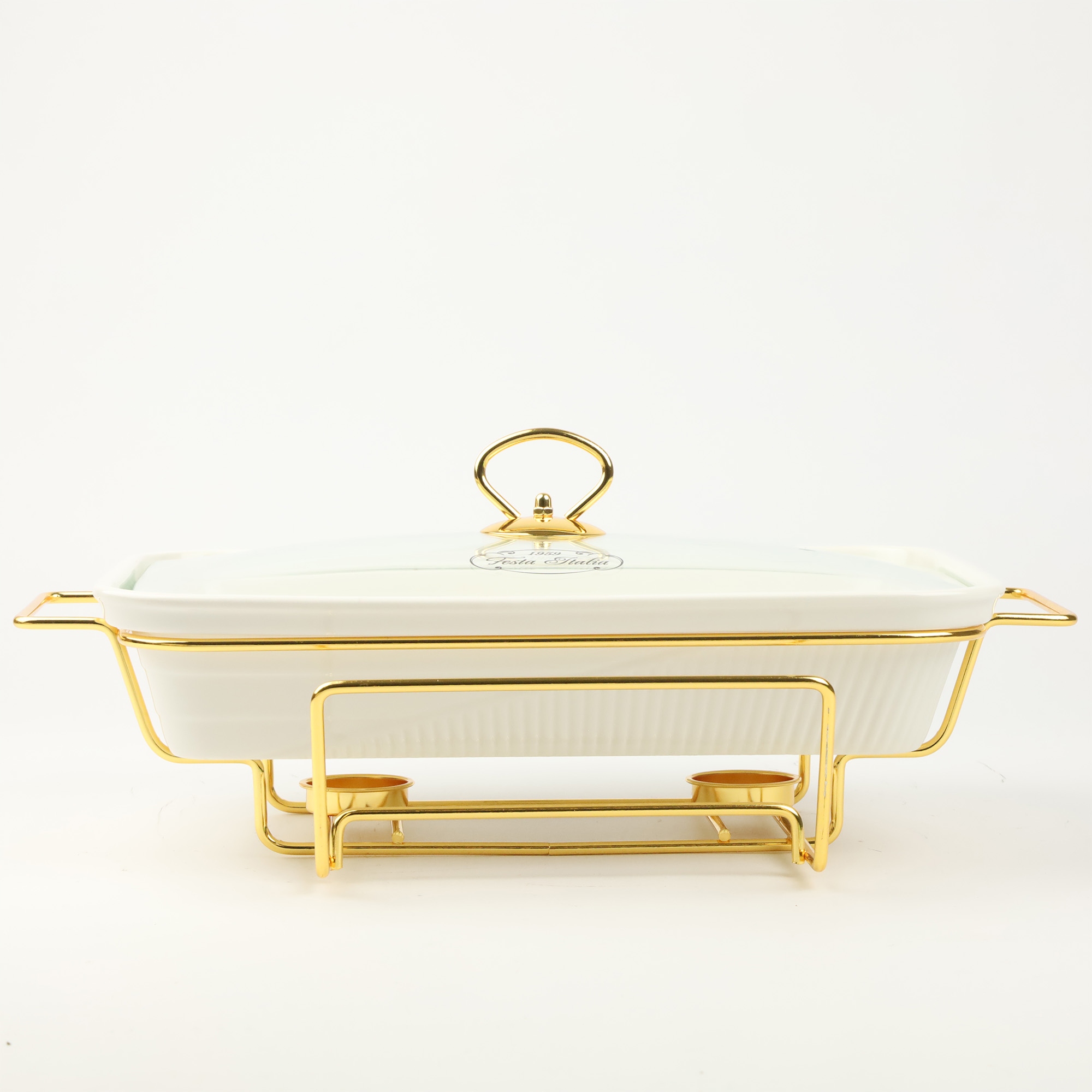 Żaroodporne Naczynie Ceramiczne z podgrzewaczem 2l prostokątne białe