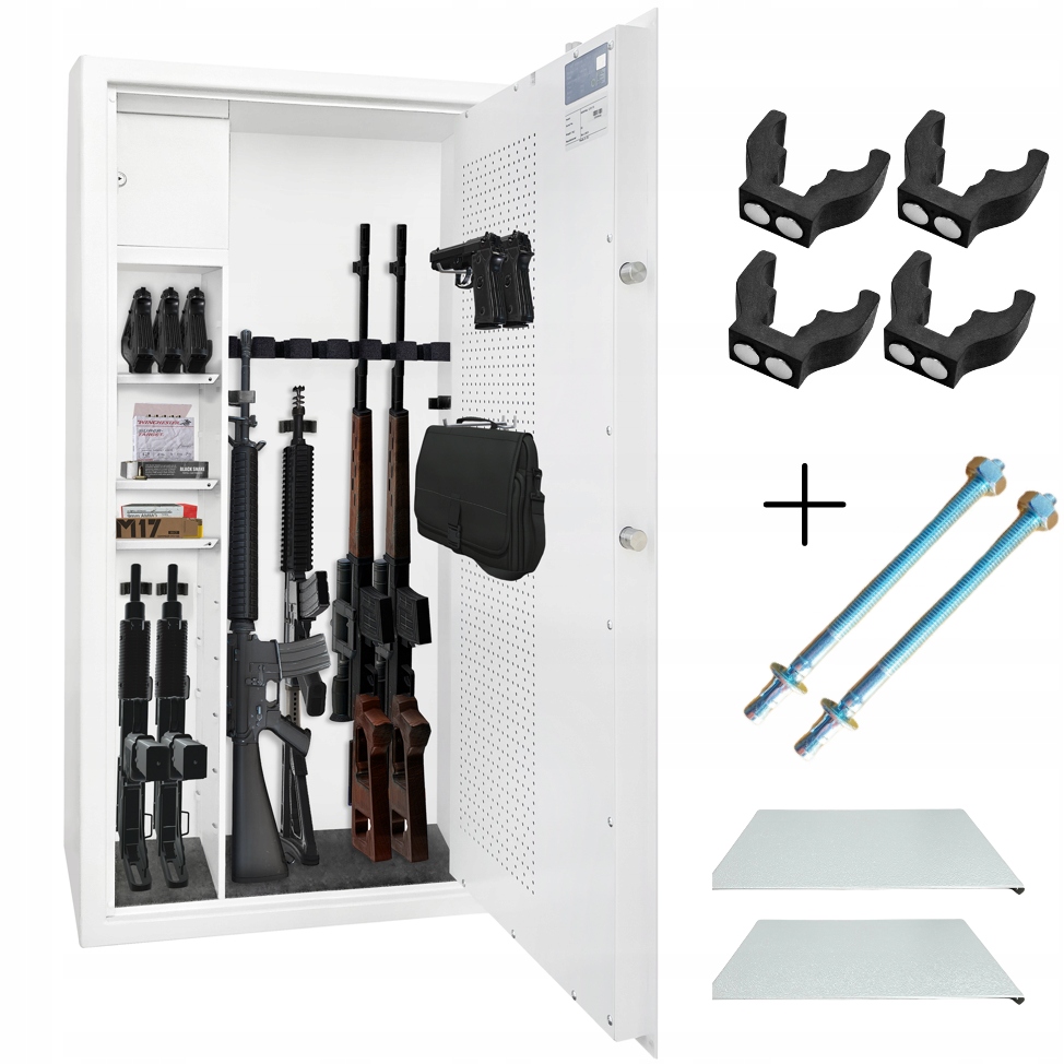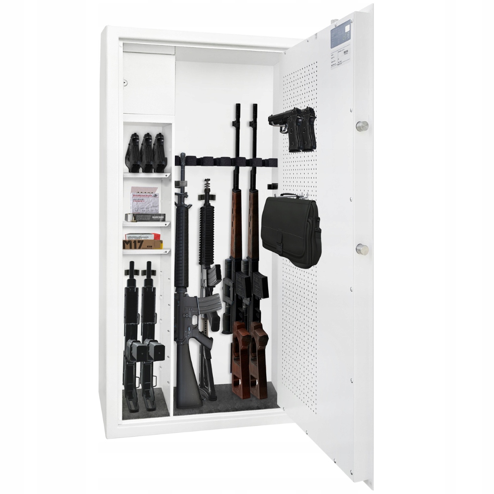 Одним из наиболее важных преимуществ продукта является солидная конструкция , которая влияет на прочность и стабильность сейфа. Укрепленная передняя панель обеспечивает большую безопасность предметов, хранящихся внутри предметов. Один из них оснащен пеной пеной пенопласта . Во втором есть полки 2 и казначейский закрыты с отдельным ключом. Дно было выложено с лайнером. При покупке этого продукта вы получаете Anti -Burglar S1 , что позволяет хранить оружие