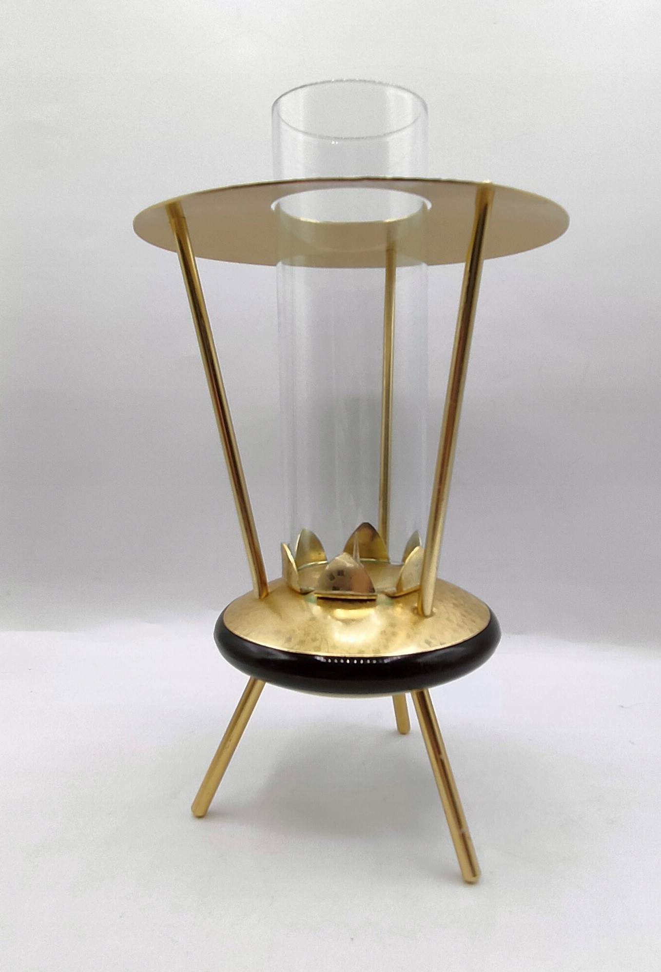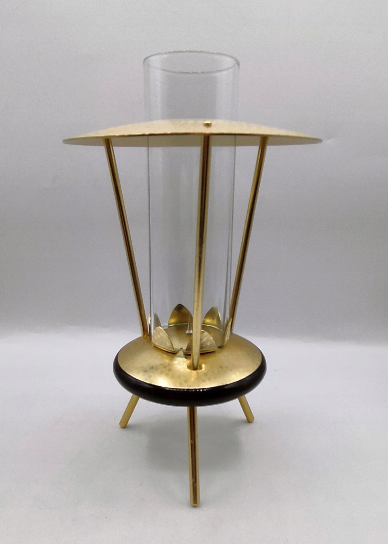 - Маяк Свеча/Фонарь Сола, 1950r. Art Deco - UFO Candlestick позолочен 1950 -е годы коллекционера 20 -го века Miarka)