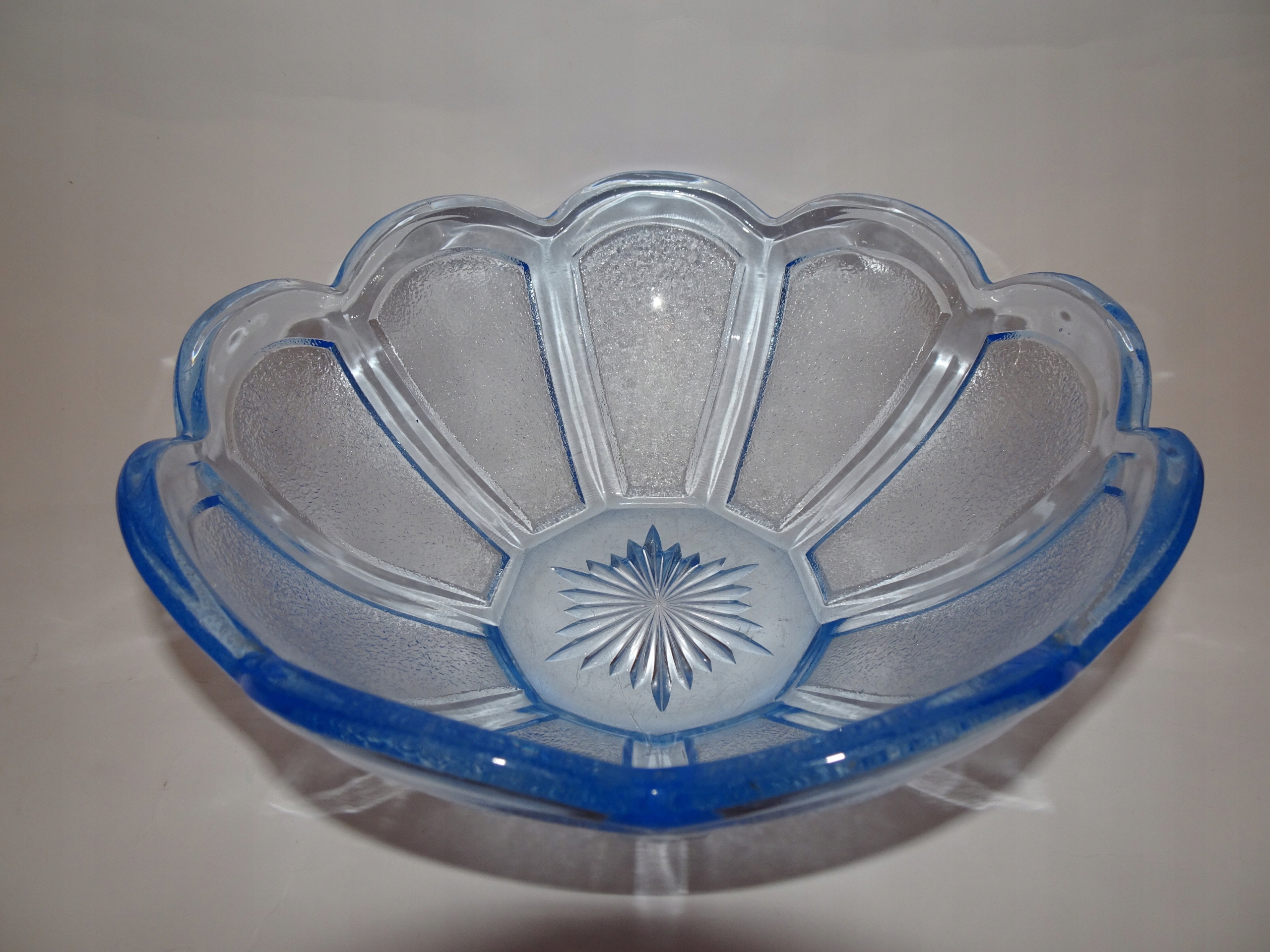 Art Deco, szklana niebieska salaterka, miska, vintage, retro, PRL
