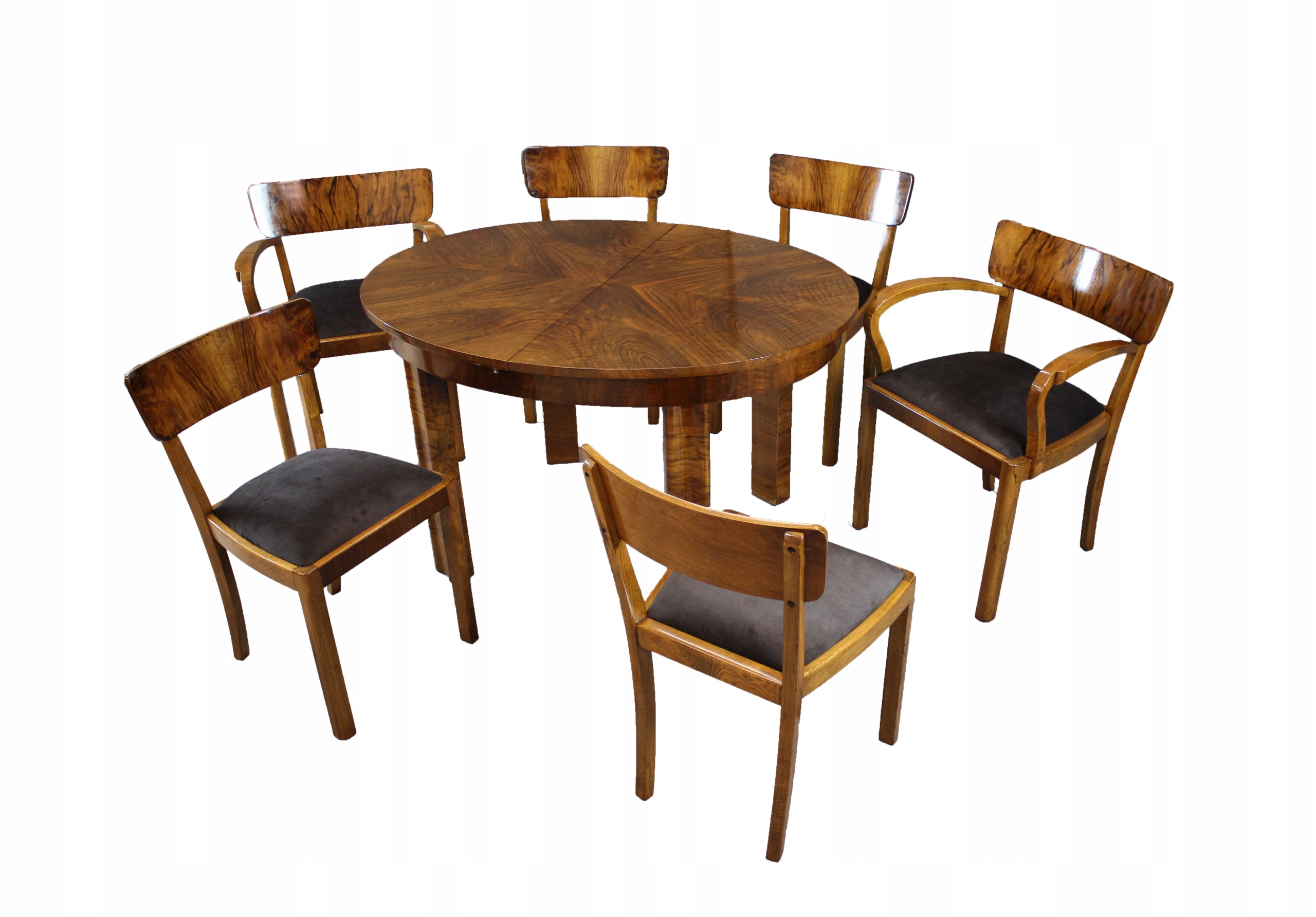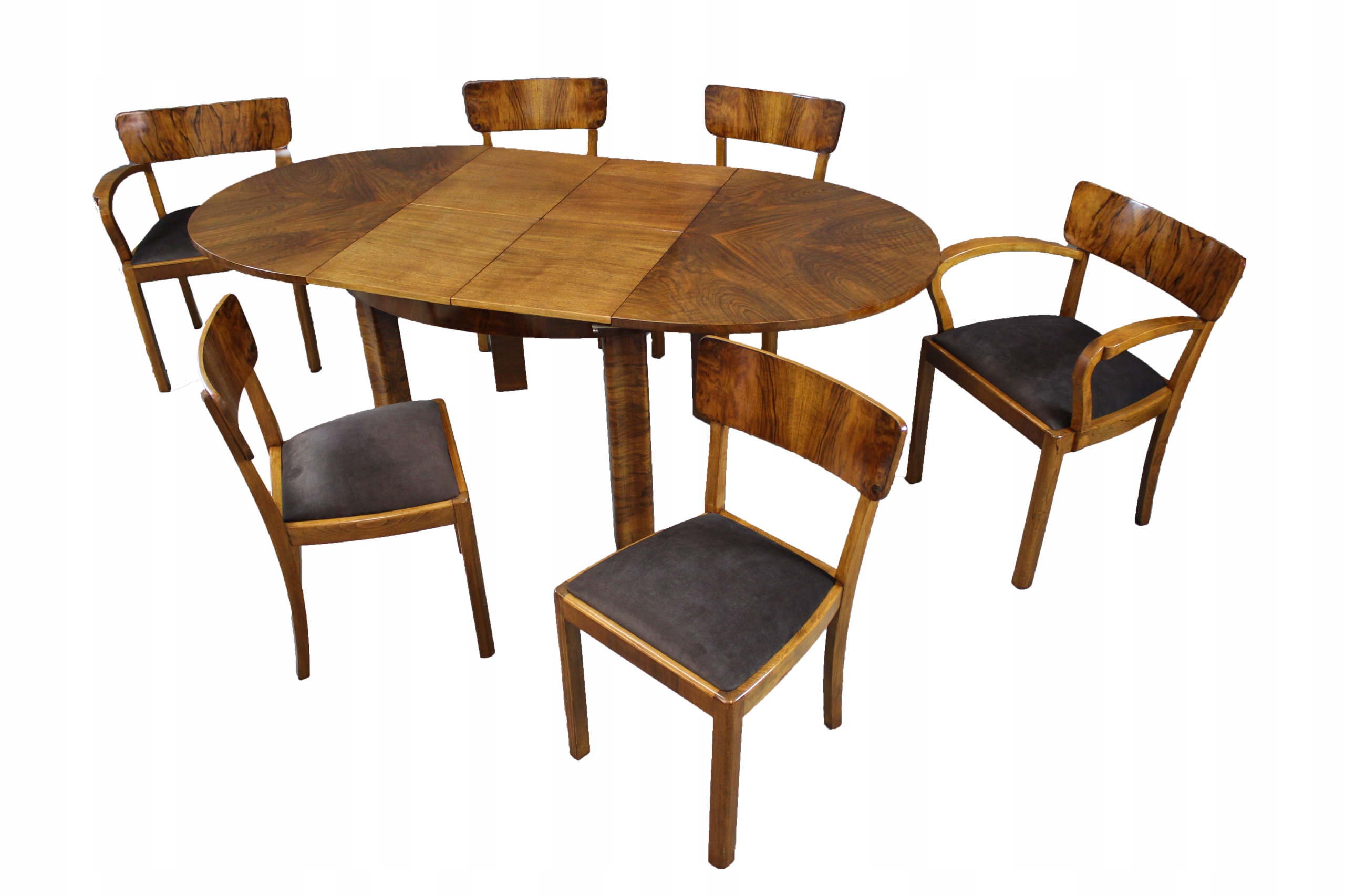 Набор мебели в стиле ар-деко 1933 года после капитального ремонта, включающий: буфет, приставной столик, раздвижной стол, четыре стула и два кресла.