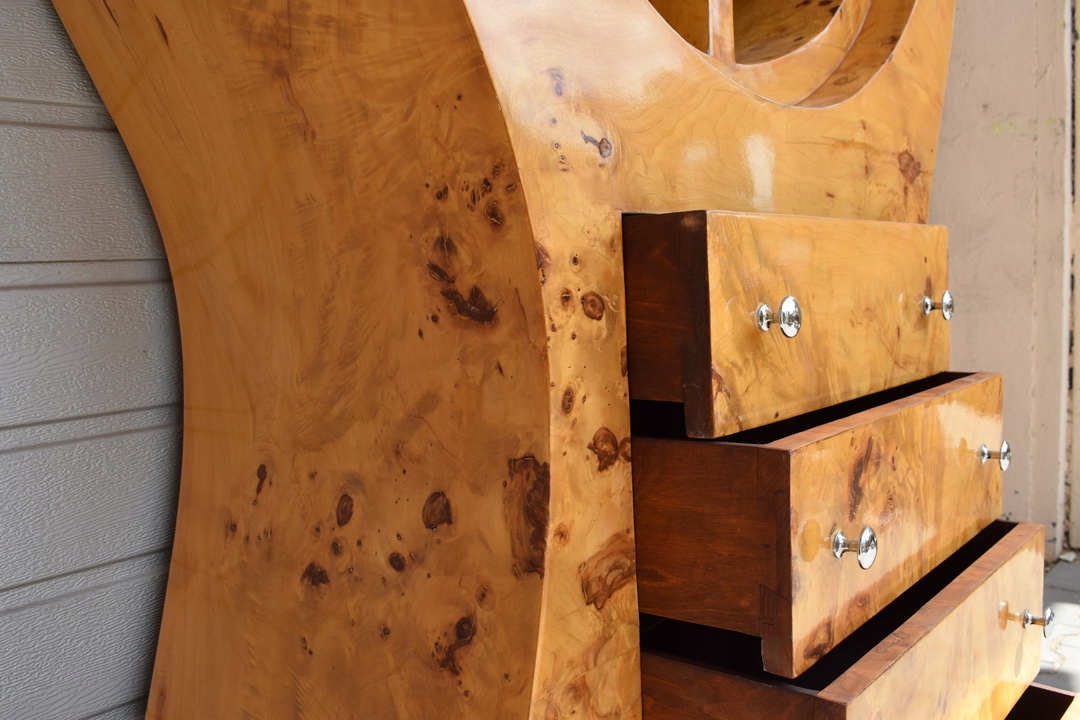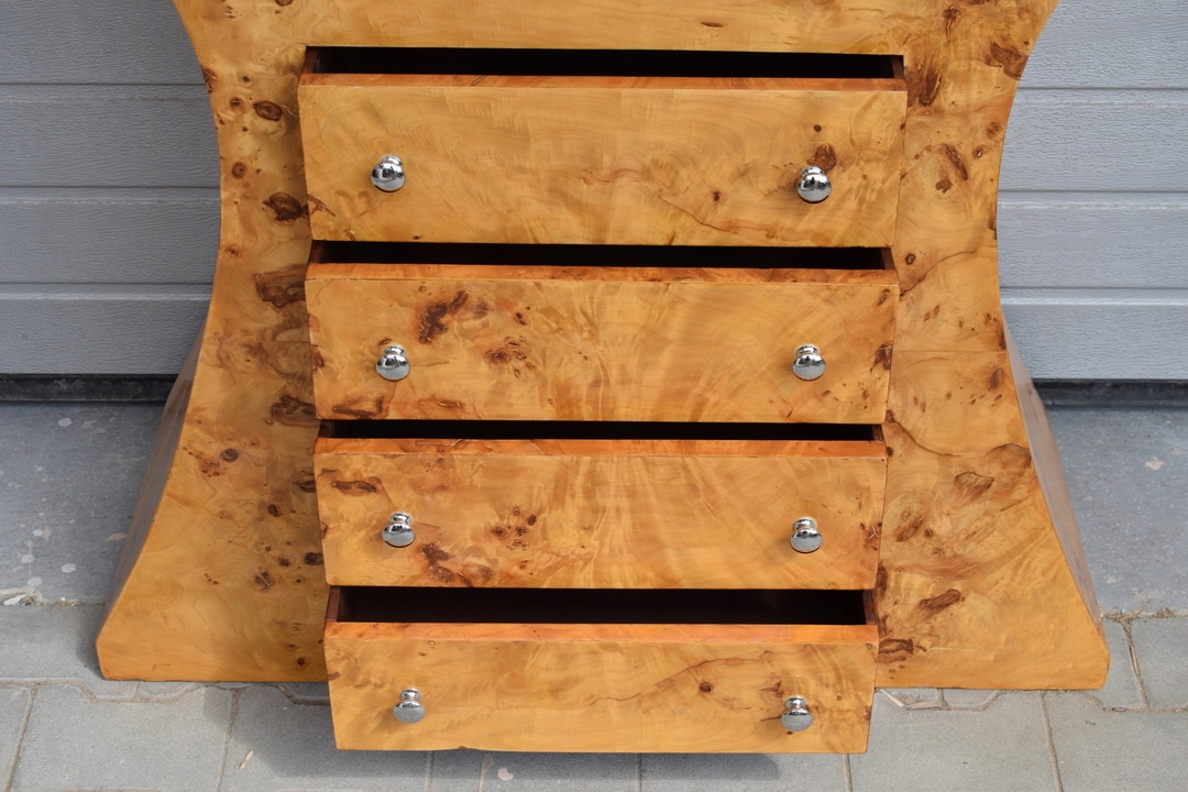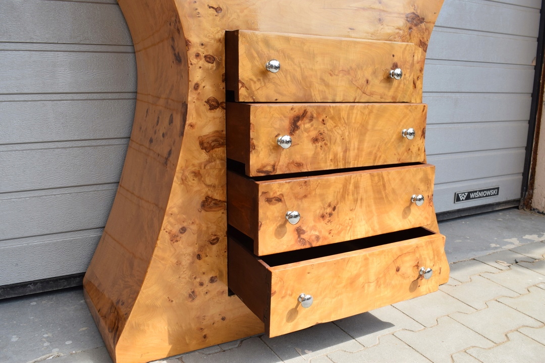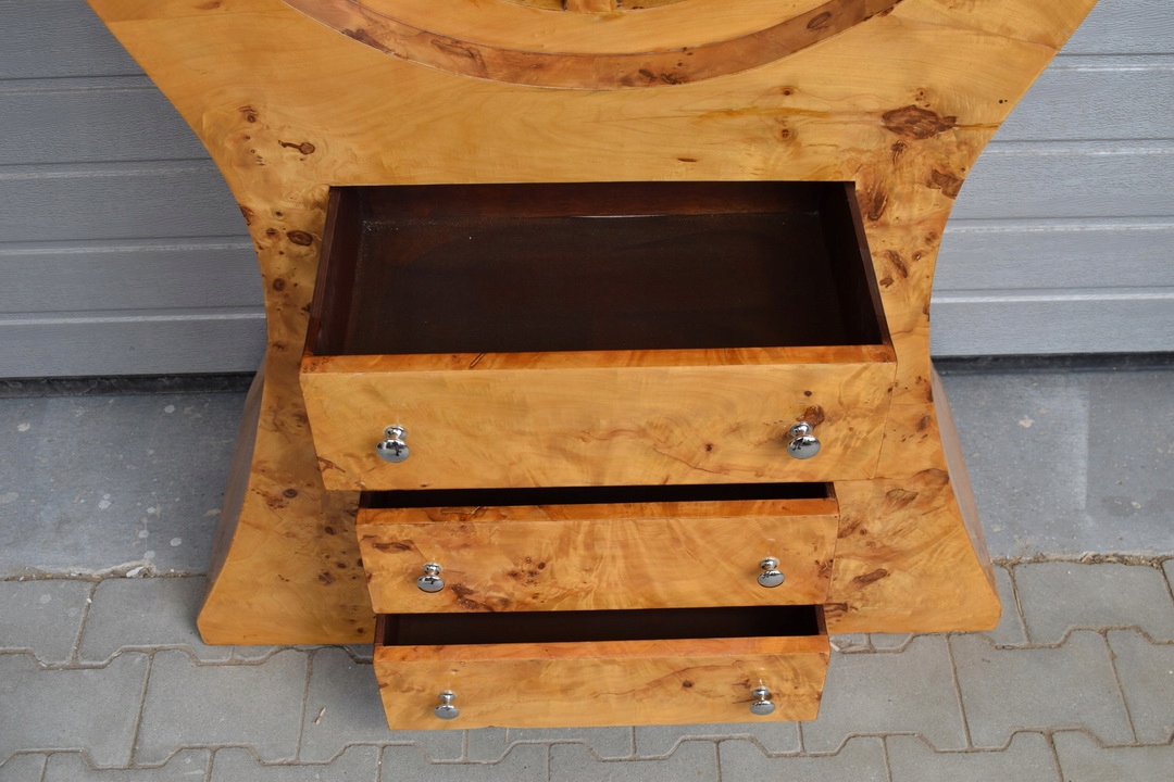 Сделанный с вниманием к мельчайшим деталям, этот буфет представляет собой настоящее произведение искусства. искусства. Уникальный дизайн и изысканный декор отличают ее от другой мебели. Каждый элемент был тщательно разработан для создания гармоничной композиции, которая идеально вписывается в эстетику стиля ар-деко.