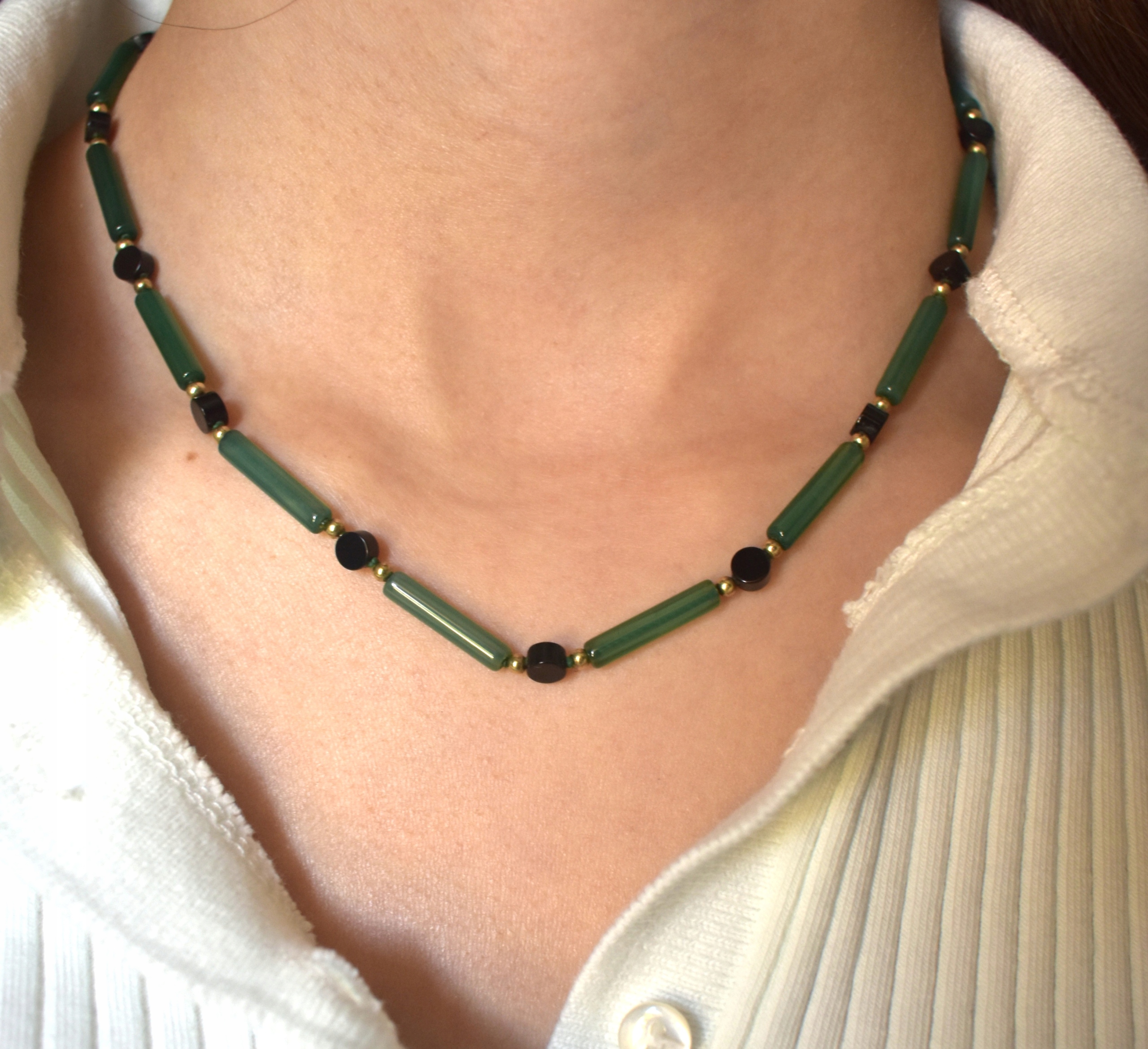 КЛАССИЧЕСКОЕ ОЖЕРЕЛЬЕ АРТ-ДЕКО В ЧЕРНО-ЗЕЛЕНОМ ЦВЕТЕ.