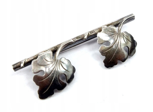 Арт-деко Вінтаж Довоєнна стара срібна брошка лист листя