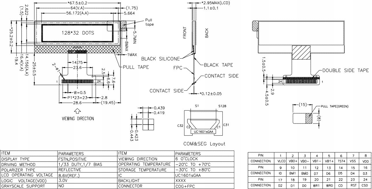 LCD-AG-C128032R-FGN NO/-E6 PBF = CGG128032R03-FGN-R