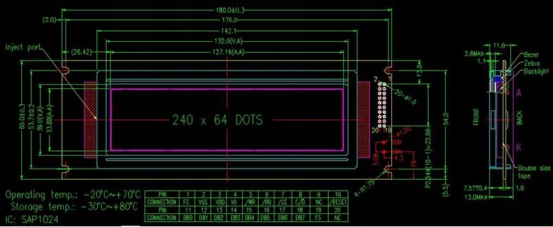 Art New LCD 240x64 белый/синий Toshiba T6963C