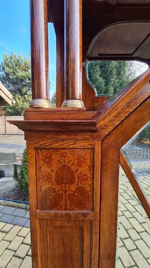 Мебель была подвергнута профессиональной реконструкции. в течение которой после тщательной очистки и ремонта столярных изделий он был окрашен в цвет средней гайки и закончил лаком