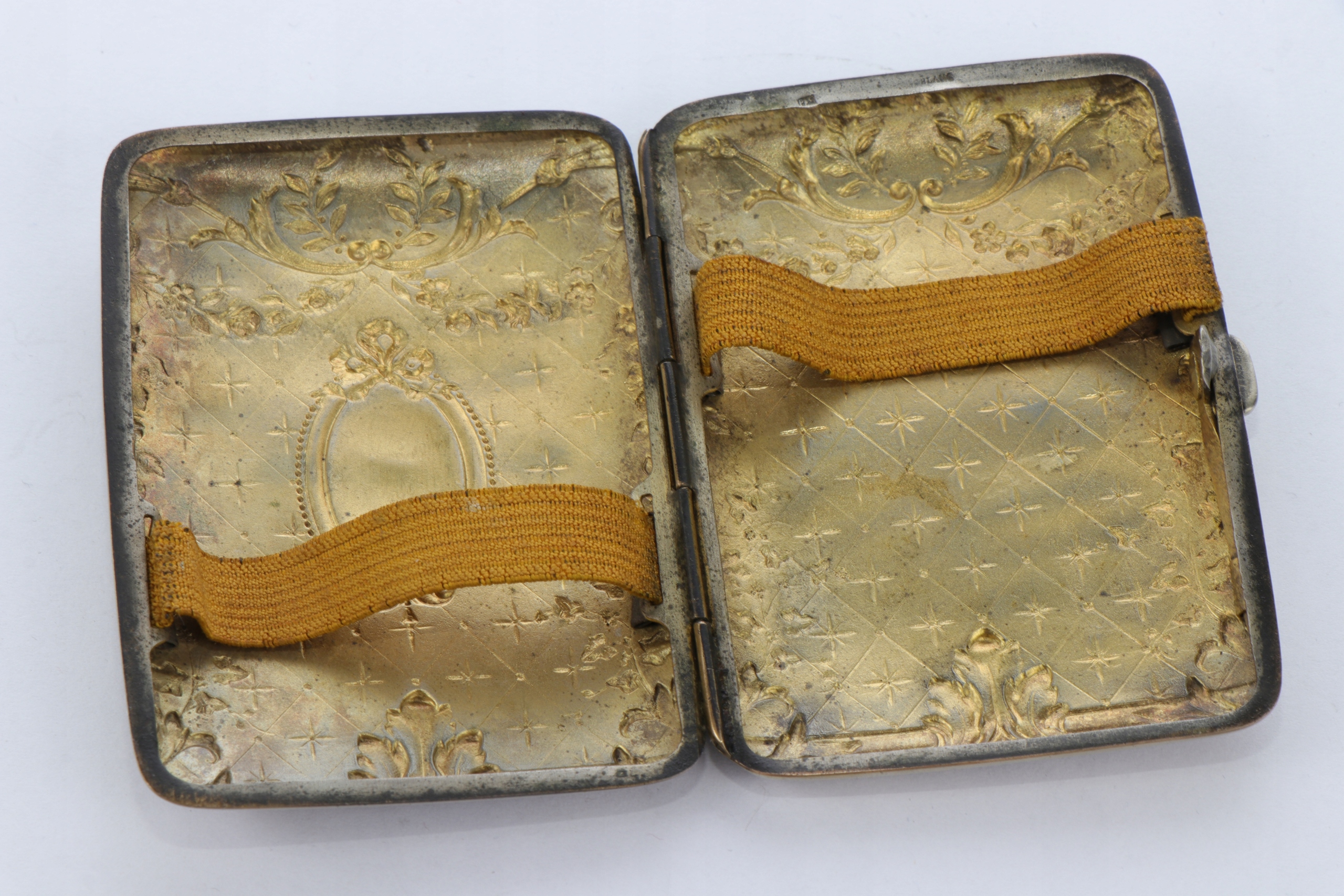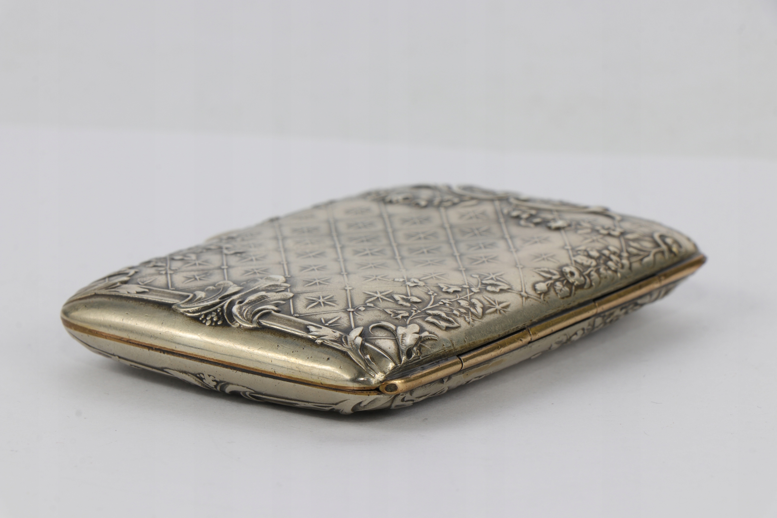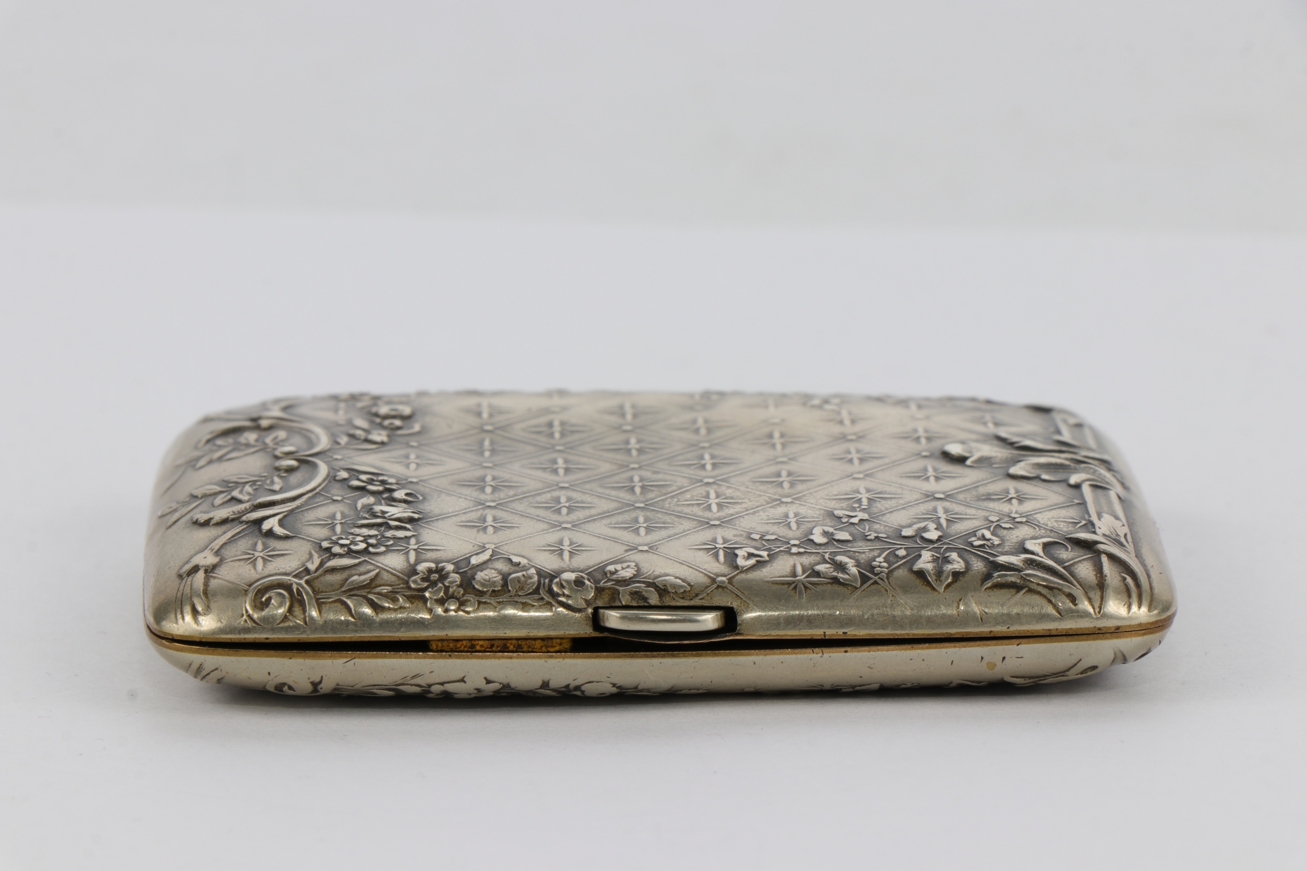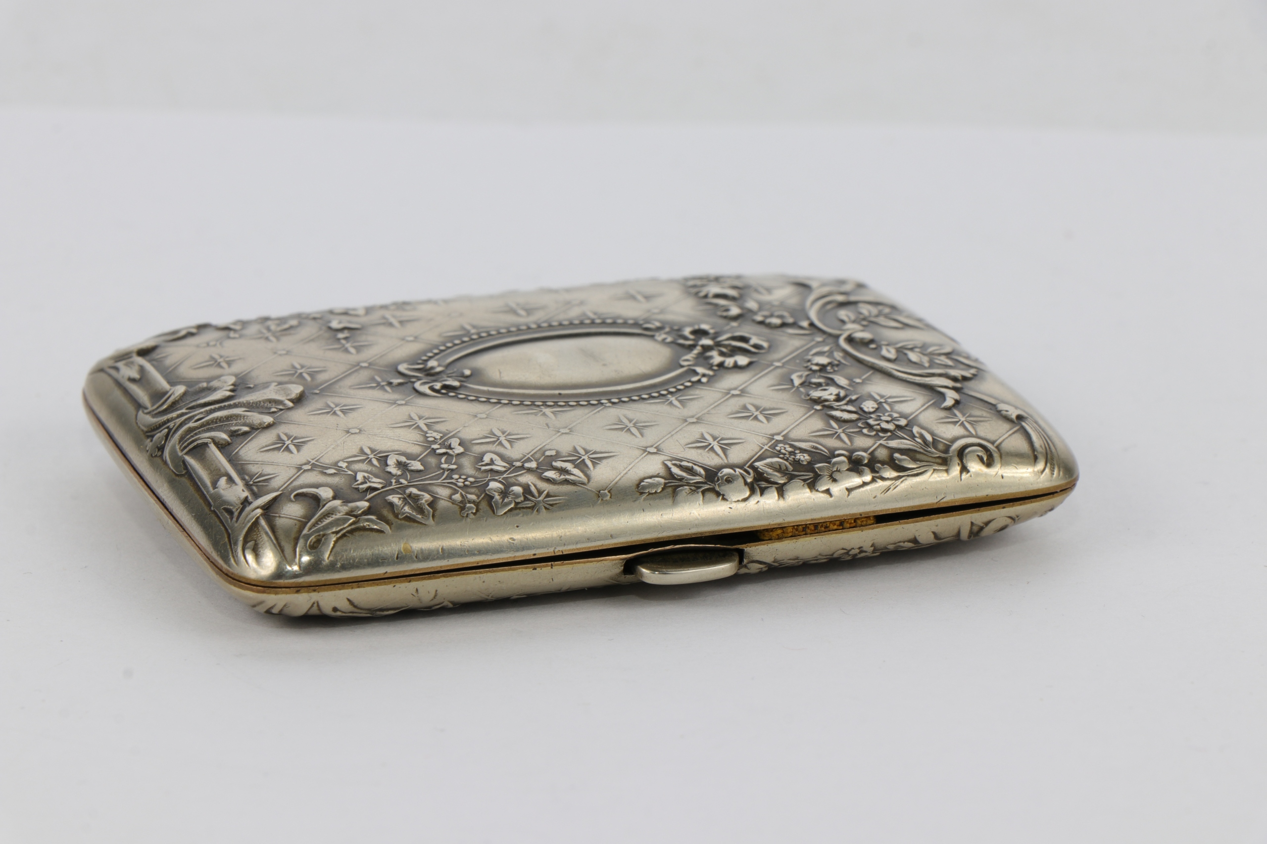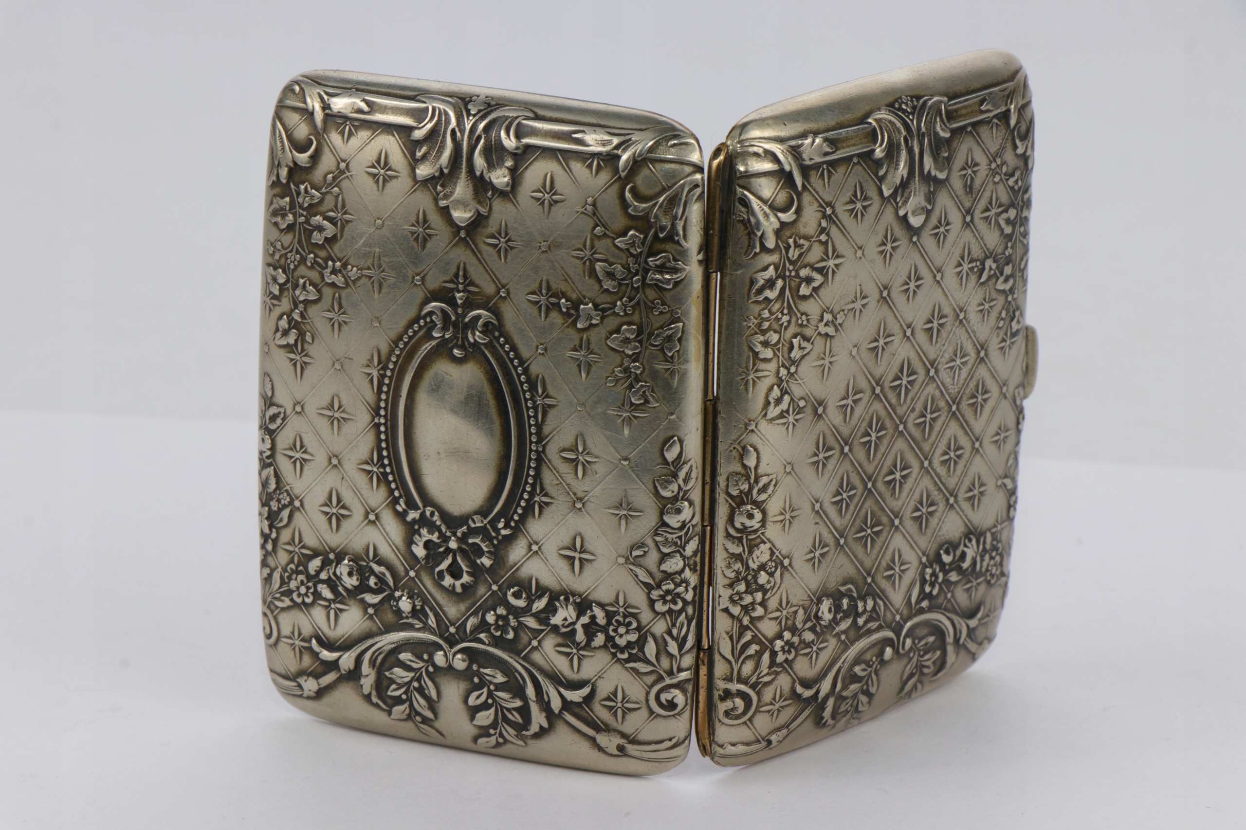 Корпус сигарет, украшенный интересным очень богатым орнаментом цветочных гирляндов и листьев акантуса. Металлический металлический сплав Blanc. Подписанный.