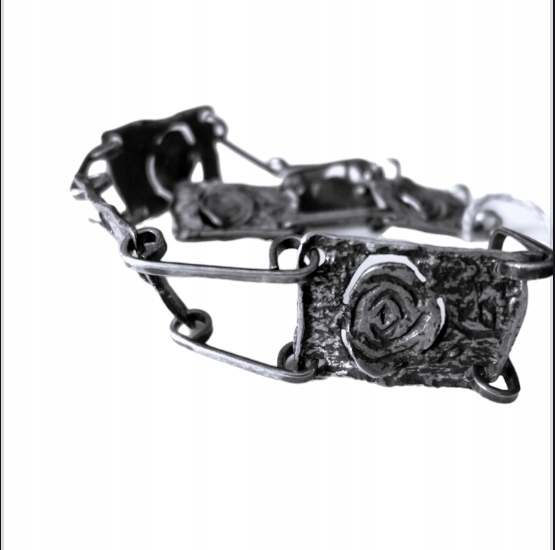 Браслет из серебра Ag. 925. Уникальное художественное изделие Серебро песочного цвета /серо-черно-желтый/ с блеском и игрой цвета. Поверхность рисунка профилирована. Видимая роза вырезана, создавая потертость. В целом оригинально и привлекает внимание. Рекомендую.