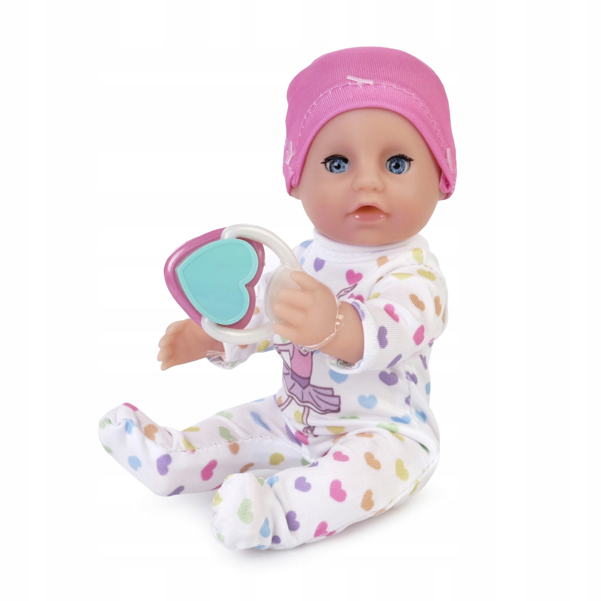 Наталья Пиинг Малушек – очаровательная миниатюрная малышка (около 17 см), похожая на настоящего малыша. Кукла одета в красивый наряд с сердечками и шапочку. В комплект входит соска, бутылочка и горшок. Накормите ребенка, посадите его на горшок, уложите спать. У куклы закрытые глаза с ресничками. Ручки, ножки и голова выполнены из приятной на ощупь резины и подвижны. Тело куклы пластиковое.