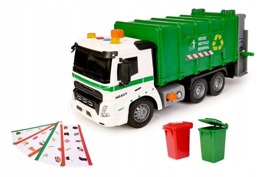 Включено: - длина машины 25 см. - 2 мусорных бака - 4 листа макулатуры для набивки