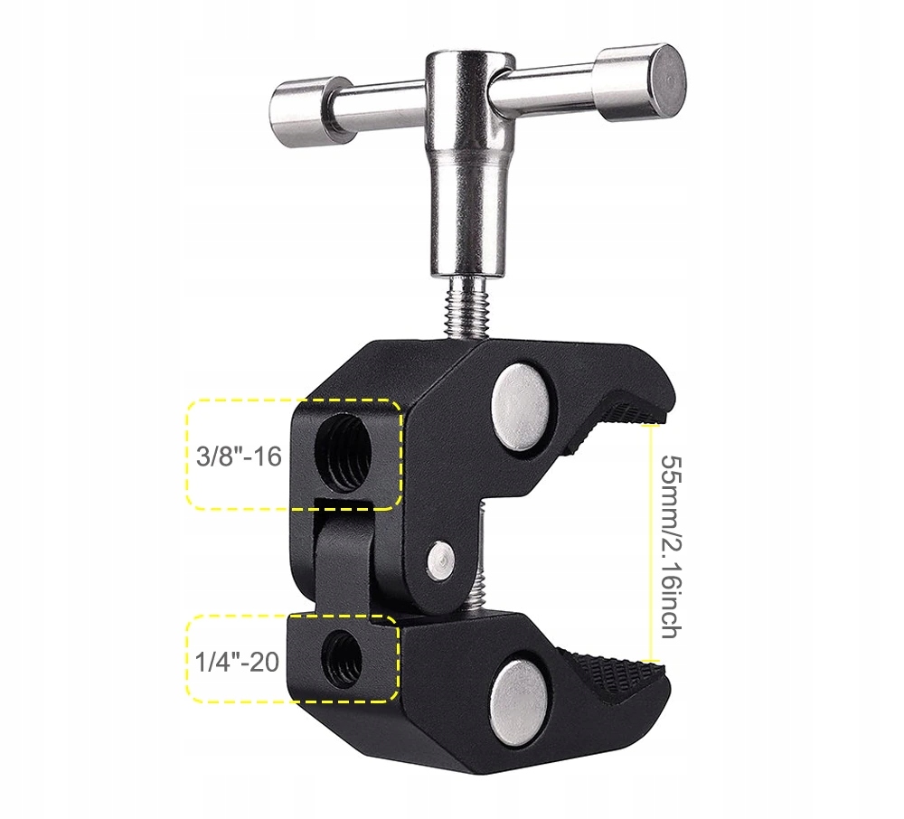 Позволяет крепить различные типы фото-видео аксессуаров, например, лампы, микрофоны, мониторы, записывающие устройства и т. д. к камере, буровой установке или роликовым конькам для камеры. Благодаря прилагаемому зажиму-крабу держатель для трубок или перекладин максимальным диаметром 5 см.