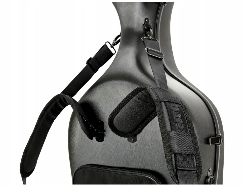 Кроме того, стенки имеют слой теплоизоляция. Доступен в широкой цветовой гамме и нескольких типах внешней поверхности. Что отличает предлагаемый футляр для виолончели от других аналогичных, представленных на рынке, так это то, что он оснащен шеститочечной системой крепления ремня. Это делаетчемодан для инструмента на спине более устойчив и кажется еще легче. Как и другие футляры для виолончелей, этот можно катать на колесах по тротуару. Поверхность футляра для виолончели, покрытая слоем поликарбоната, делает его менее чувствительным к незначительным механическим повреждениям, чем ламинаты из стекла или углеродного волокна. Однако, чтобы сохранить красивую блестящую поверхность, пользователю необходимо ухаживать за корпусом.