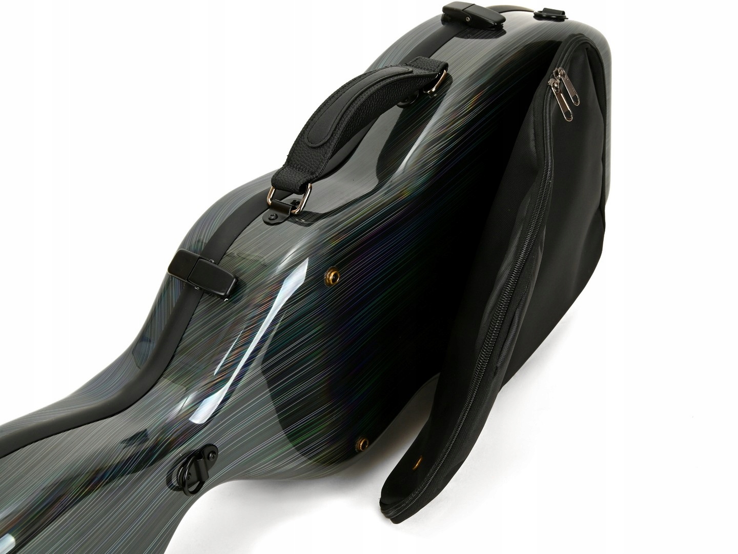Дизайн подчеркивает форму инструмента. Это один из самых дешевых корпусов из пластика, выполненный в экономичном варианте. В комплект входят задние лямки и музыкальная сумка, крепящаяся к футляру на кнопках. Различные цвета с текстурой переплетения ткани или имитацией волос. Поверхность корпуса скрипки, покрытая слоем поликарбоната, делает его менее чувствительным к механическим повреждениям, чем ламинаты из стекловолокна. Однако, чтобы сохранить красивую и блестящую поверхность, необходимо позаботиться о чехле, которым вы пользуетесь.