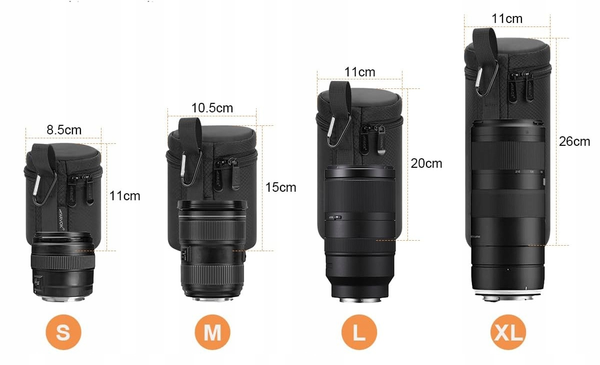 - Благодаря четырем размерам (S, M, L, XL) набор подходит для большинства объективов Nikon, Sony, Canon, Sigma, Tamron, Fuji, Panasonic и других производителей.