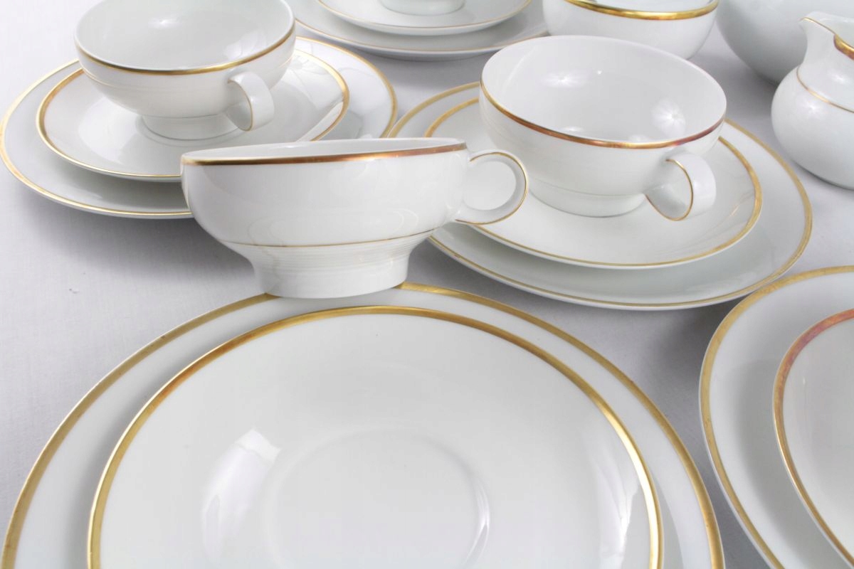 Белый фарфор с круглым тиснением, позолоченными краями