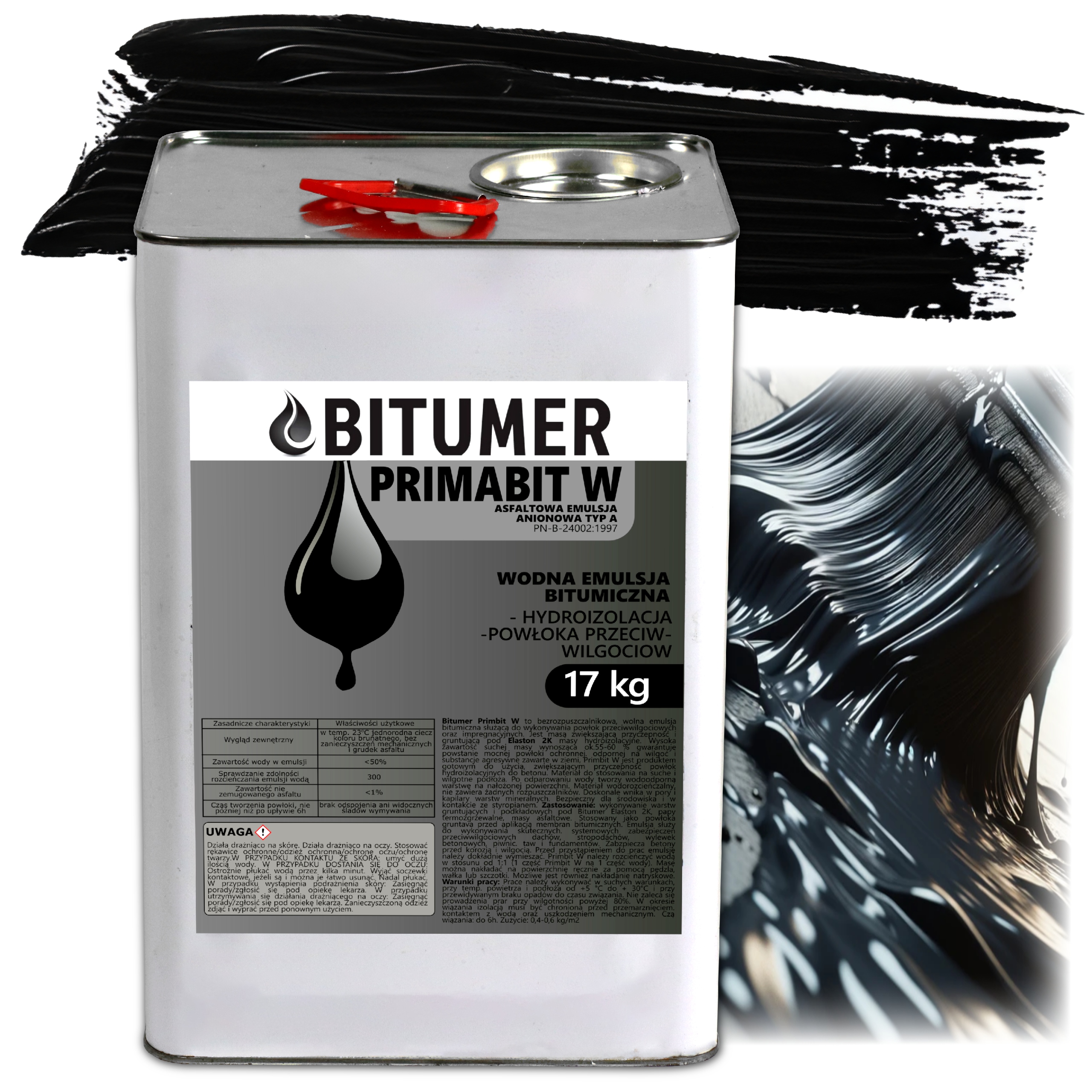 Битумер Примабит W – асфальтовая масса для выполнения влаго- и легкой гидроизоляции фундаментов. Создает эластичное водостойкое покрытие. Разбавленный водой в соотношении 1:1, может использоваться в качестве грунтовки для других битумных масс, в том числе масс типа КМБ, термосвариваемых войлоков, а также в качестве влагозащитного утеплителя для крыш. Продукт содержит высокое содержание сухого вещества, около 60%. Это особенно важно, если учесть, что именно асфальтовая масса обеспечивает гидроизоляционные свойства, а не содержащаяся в массе вода. Для сравнения, в обычном диспербите содержится около 30% сухого вещества, а иногда и меньше. Кроме того, продукт очень эффективен и прост в применении. Благодаря специальным добавкам масса очень легко распределяется по поверхности стены и ее можно наносить кистью, валиком или распылителем.