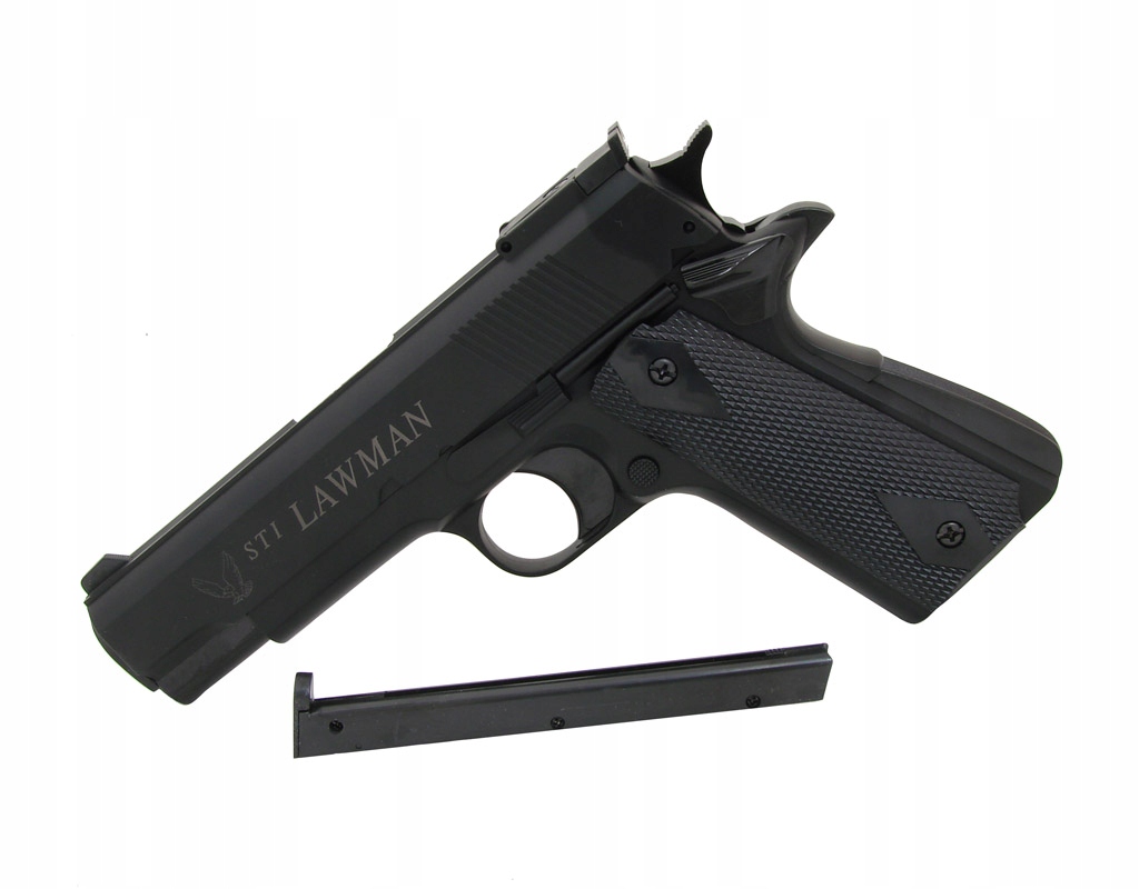 Реплика лицензированного военного пистолета - Модель 1911, созданная авторитетной международной компанией STI, оснащена зеленым с газом и достигает начальной скорости 250 кадров в секунду. Идентификационные знаки, которые появляются на оригинале, также были помещены в реплику. Благодаря системе Hop Up и регулируемому Zczerbin, этот пистолет характеризуется превосходной точностью и диапазоном. Он остается в режиме DA и предлагается в черной цветной версии. Это отличное предложение для людей, которые ищут недорогой газовый пистолет. Комплект включает в себя базовый пакет для мяча. Газ