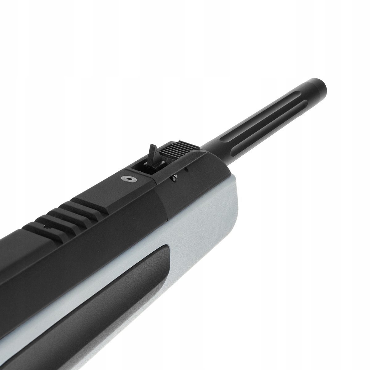 В ней используется длинная 22-миллиметровая RIS-рейка, позволяющая установить оптический прицел, а также она оснащена откидными прицельными механизмами, состоящими из мушки и целик, который в сложенном виде находится на одном уровне с планкой.