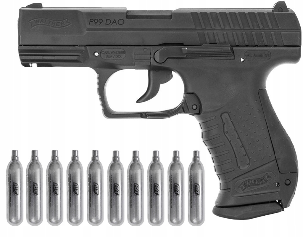 ASG Walther P99 DAO CO2, пистолет 300 кадров в секунду, металлический замок + 10 капсул CO2