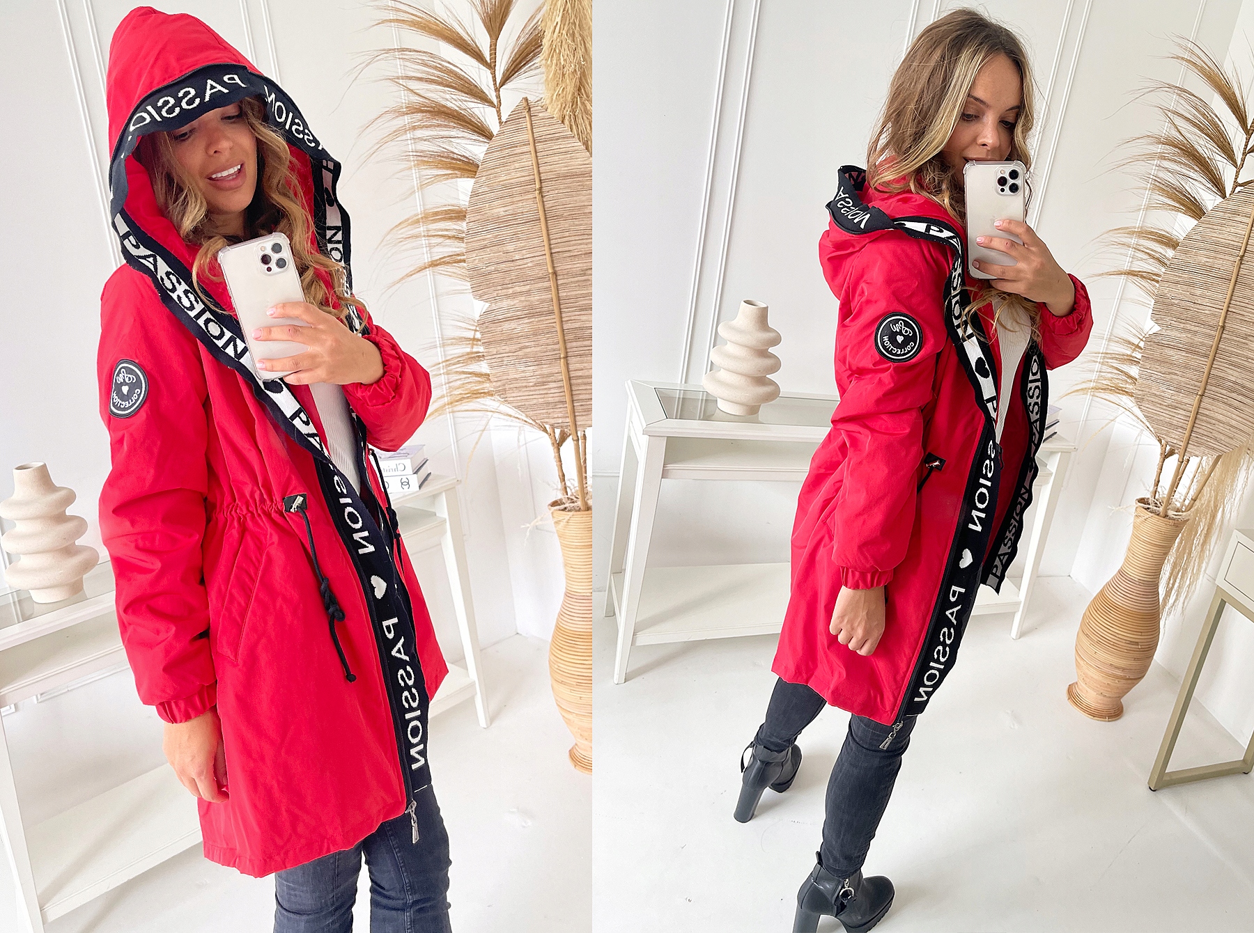 - Вдоль молнии и капюшона трикотажная отделка.
