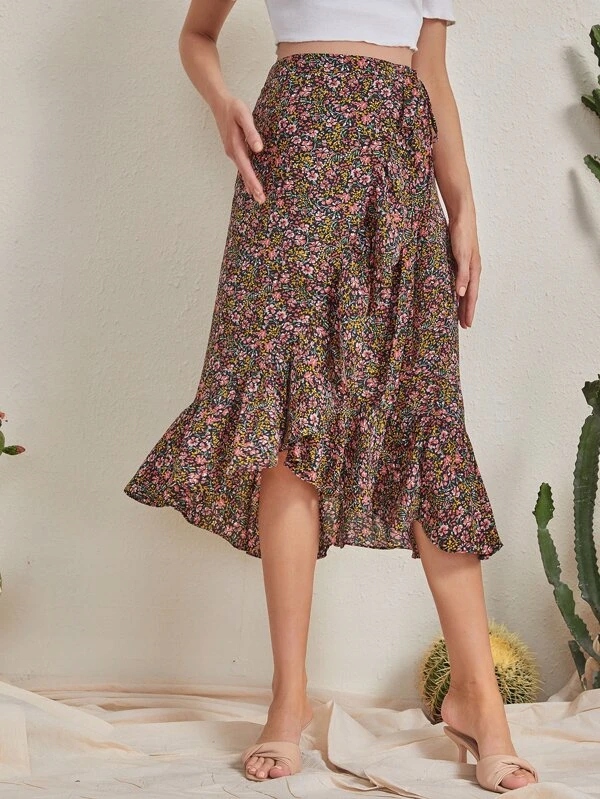 АСИМЕТРИЧНА СПІДНИЦЯ ДЛЯ ВАГІЛЬНИХ З АСИМЕТРИЧНИМ ЗВ'ЯЗКОМ SHEIN L 917